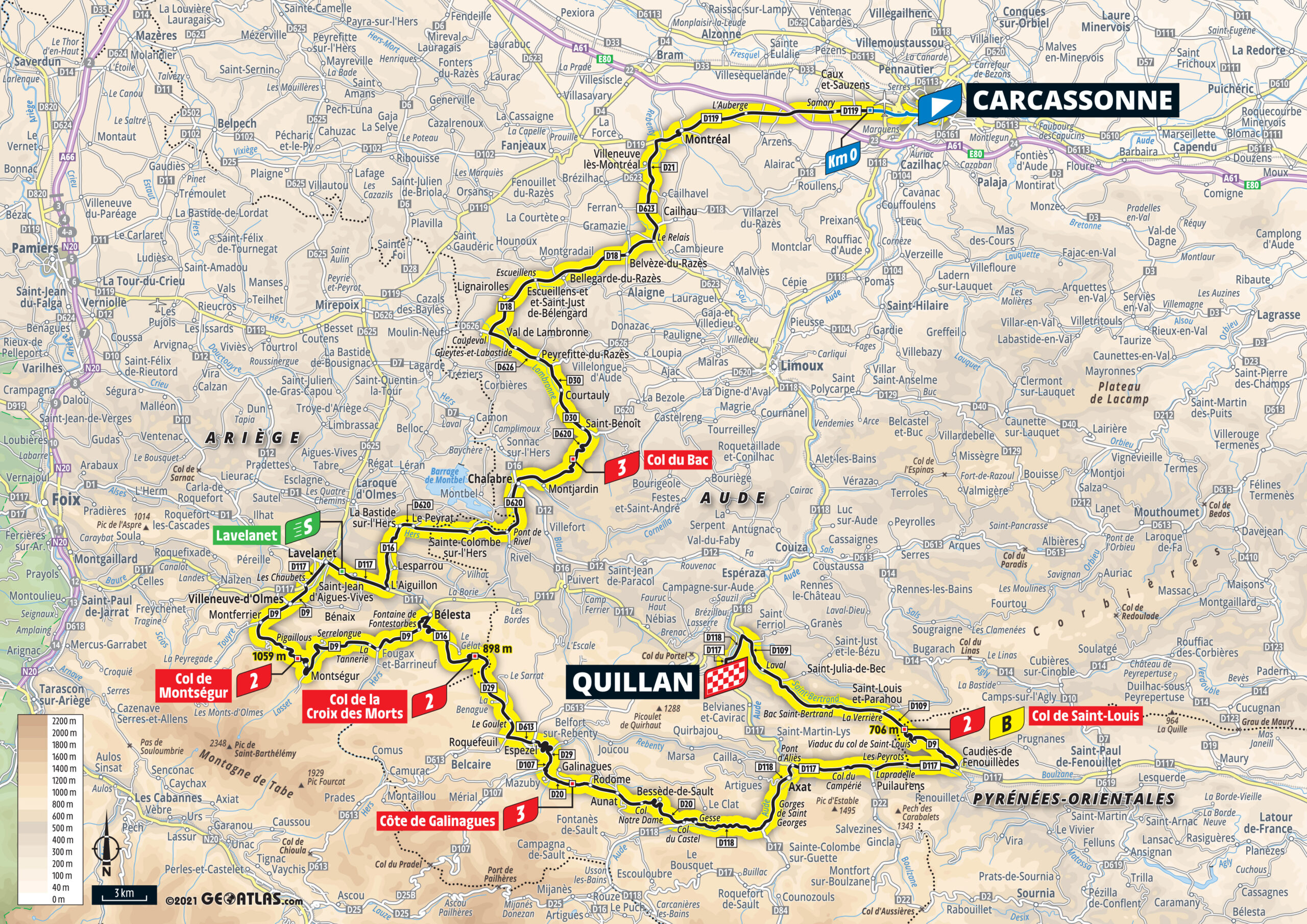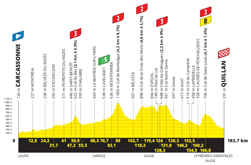 14e étape – Samedi 10 juillet 2021 : Carcassonne > Quillan (183,7 km)
