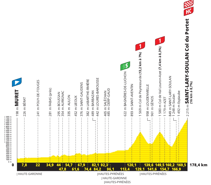 Km 178,4 – Hors-cat. : Saint-Lary-Soulan/Col du Portet (16,1 km à 8,6%)