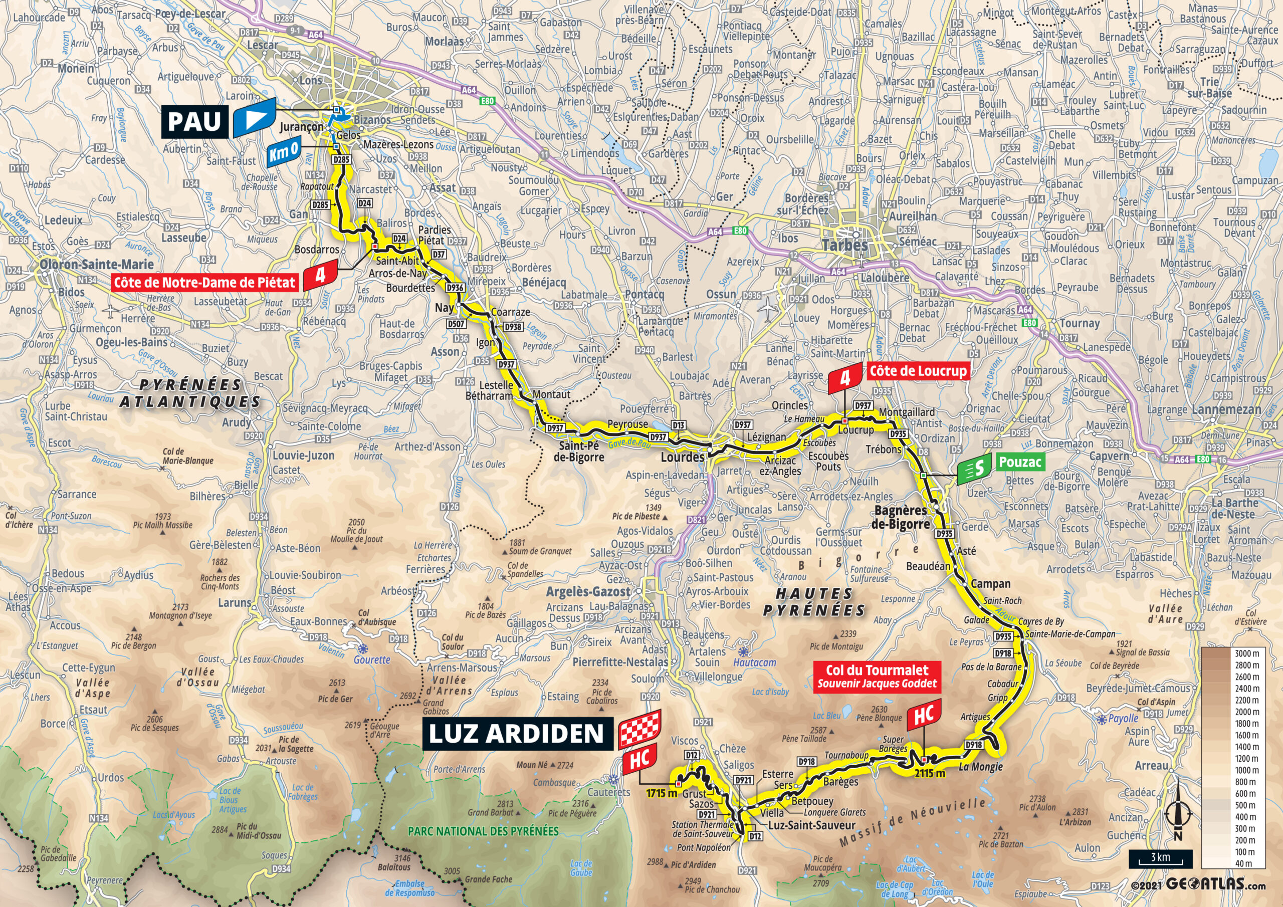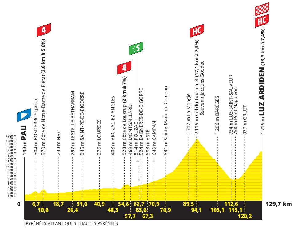 18e étape – Jeudi 15 juillet 2021 : Pau > Luz-Ardiden (129,7 km)
