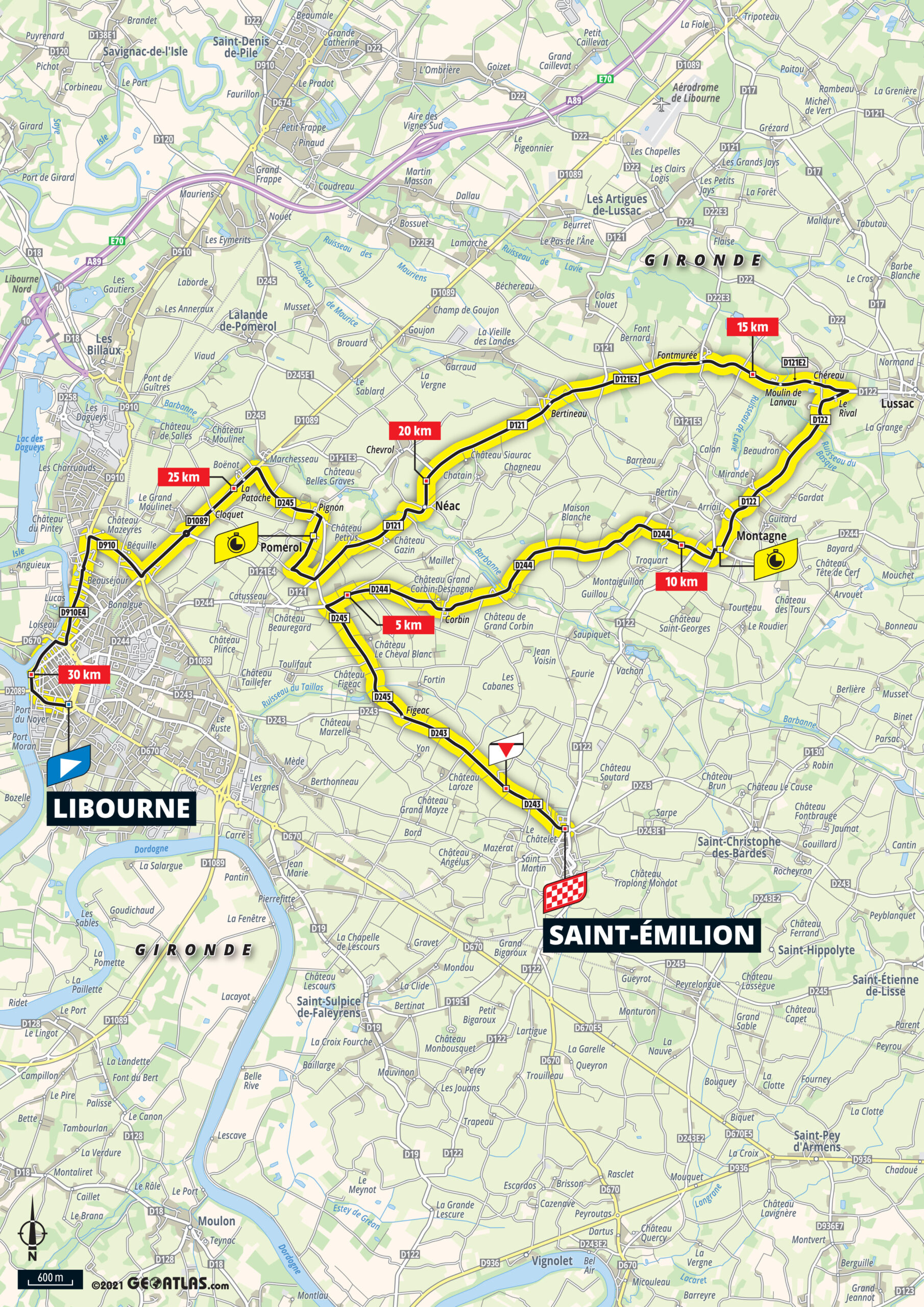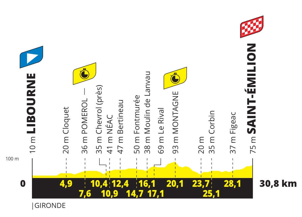 20e étape – Samedi 17 juillet 2021 : Libourne > Saint-Emilion (30,8 km – CLM individuel)