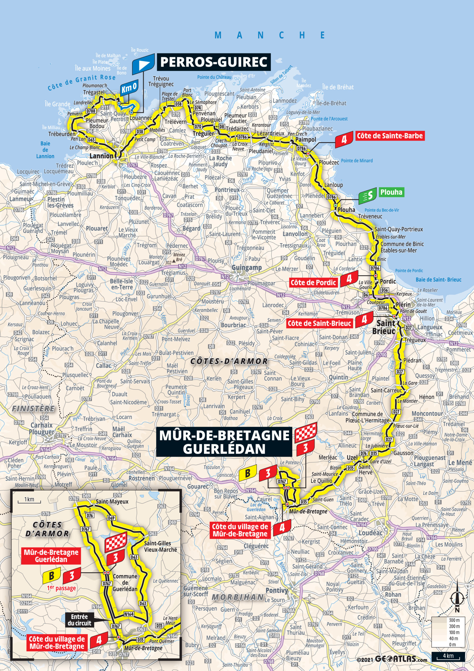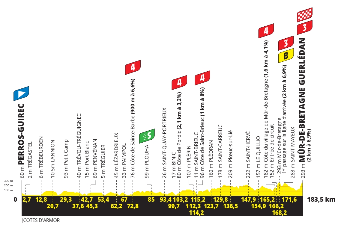 2e étape – Dimanche 27 juin 2021 : Perros-Guirec > Mûr-de-Bretagne Guerlédan (183,5 km)