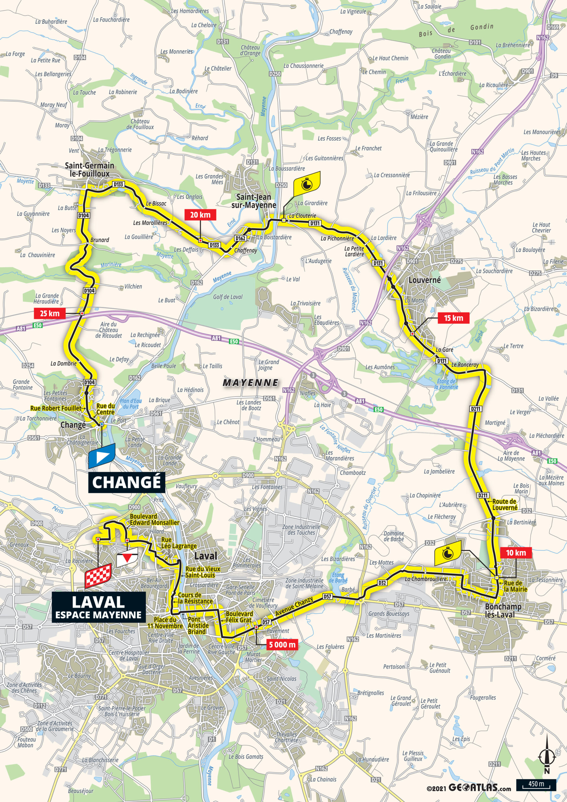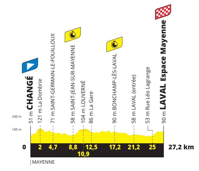 5e étape – Mercredi 30 juin 2021 : Changé > Laval Espace Mayenne (27,2 km – CLM individuel)