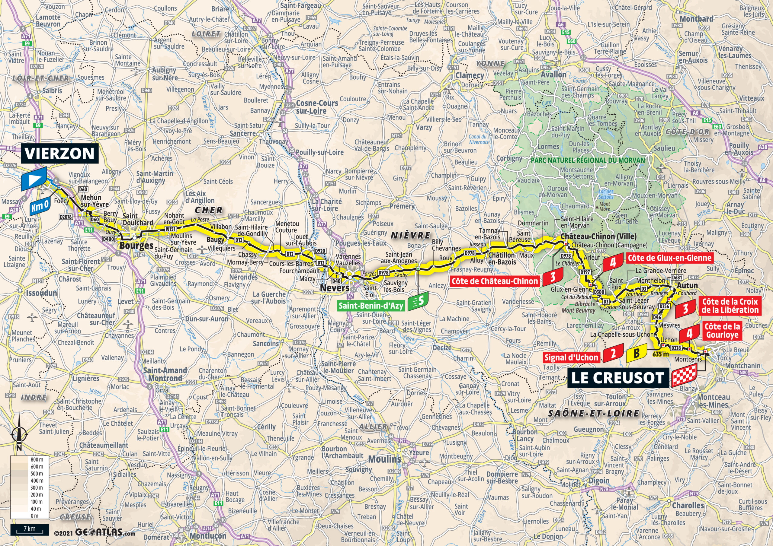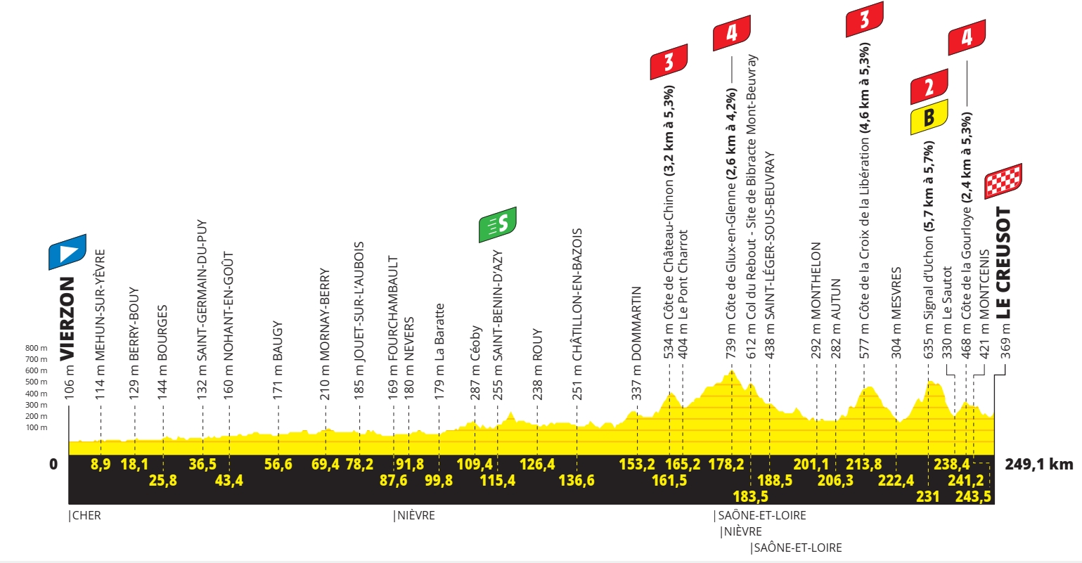7e étape – Vendredi 2 juillet 2021 : Vierzon > Le Creusot (249,1 km)