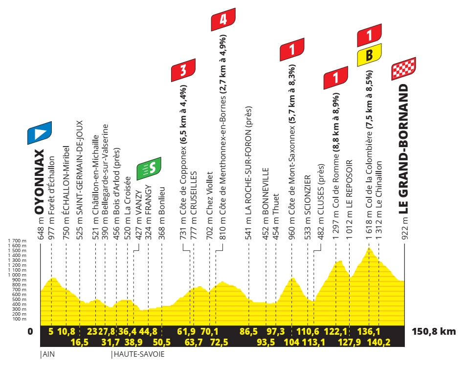 8e étape – Samedi 3 juillet 2021 : Oyonnax > Le Grand-Bornand (150,8 km)
