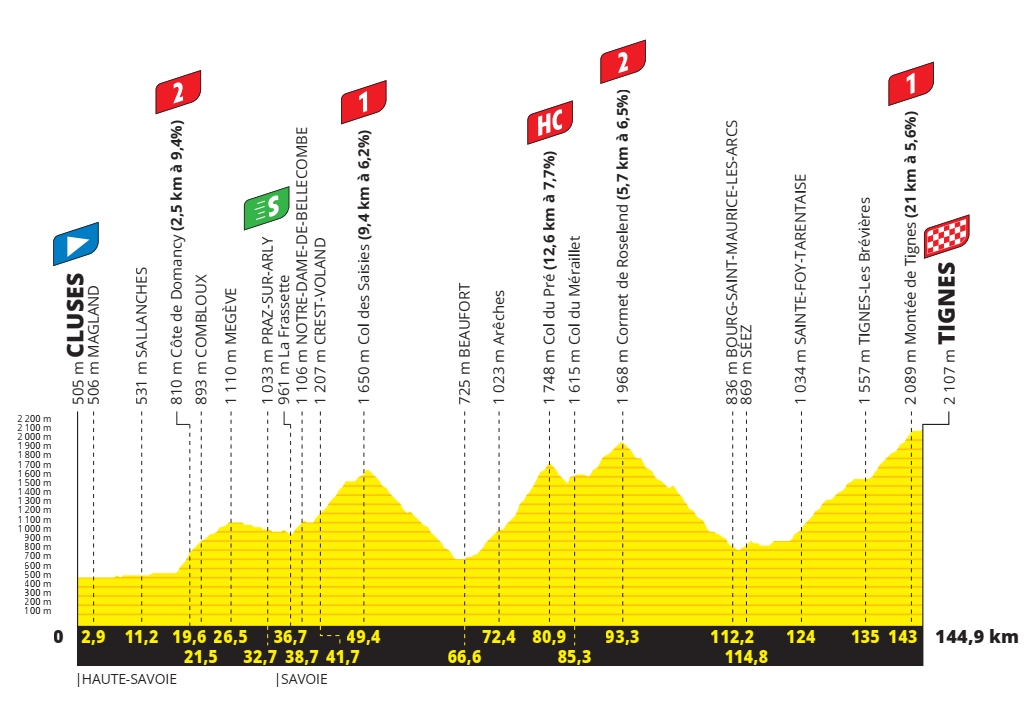9e étape – Dimanche 4 juillet 2021 : Cluses > Tignes (144,9 km)