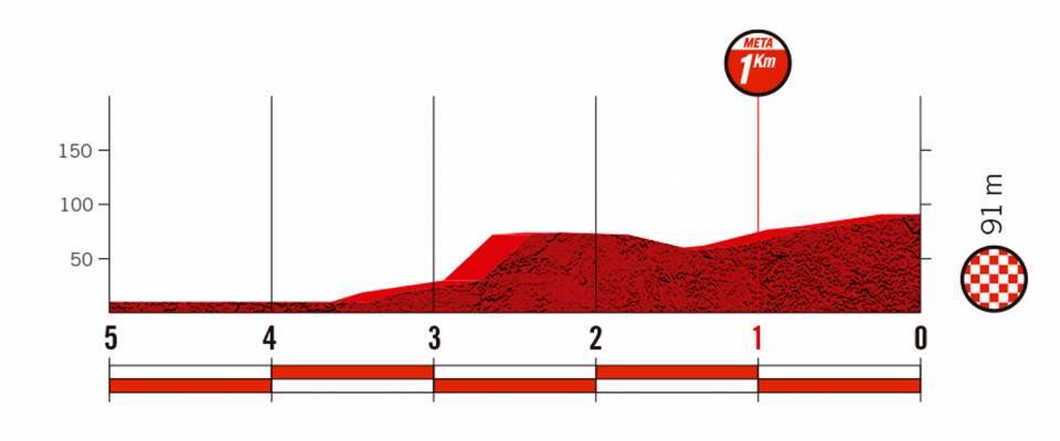 Une première colline de près de trois kilomètres à 5,5% de moyenne permettra déjà d’écrémer le peloton dans les dix derniers kilomètres avant les trois dernières bornes en montée vers Tomares. Cela débutera pas un mur de 700 mètres à plus de 8% de moyenne, cela se conclura par un dernier kilomètre à près de 4% de moyenne pour les costauds.