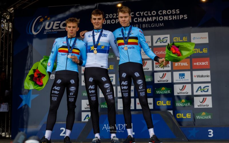 Emiel Verstrynge, déjà champion de Belgique et vice-champion du monde, s’offre donc le titre européen, mais il veut encore viser mieux : « J’ai obtenu les étoiles, je veux désormais viser le maillot arc-en-ciel », lance-t-il sans faux semblant. Une confirmation des talents qui inondent le peloton des espoirs actuellement : outre Verstrynge et Nys, Witse Meeussen a complété un podium 100% belge qui a fait exploser le public de la Citadelle de Namur, ce samedi. « J’étais dans une sorte de transe dans le dernier tour. Quand j’ai vu comment je remontais sur Ronhaar et Toneatti, je me suis mis à croire en un podium. Le soutien des supporters et la possibilité de réaliser un podium totalement belge m’a donné la dernière poussée nécessaire », sourit Meeussen. Une joie qui contrastait avec les déceptions de Ronhaar, mais aussi de Joran Wyseure, le champion du monde dans un jour sans et contraint à une neuvième place, ou encore Jente Michels, septième mais en pleurs à l’arrivée, faute de place sur le podium.