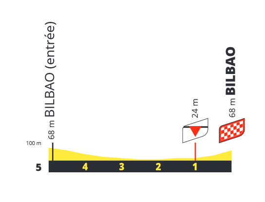Un départ depuis le Pays basque espagnol ne pouvait se faire sans la découverte des principales collines qui colorent la côte cantabrique. Dès cette première journée de course sur la terre »Euskadi », les candidats de ce 110e Tour de France vont découvrir les reliefs escarpés de ce territoire passionné. Des dizaines de milliers de spectateurs sont attendus sur ces routes sinueuses et abruptes, qui ne feront pas plaisir aux purs sprinters. Cela se voit alors dès les premiers kilomètres : après un départ fictif dans les rues de Bilbao destiné à révéler les joyaux de la plus grande ville basque, du musée Guggenheim à sa cathédrale en passant par le pont Zubizuri, le peloton va directement grimper avec la côte de Laukiz, de troisième catégorie. Si cinq ascensions seront répertoriées durant cette étape d’ouverture, les buttes vont s’enchaîner sans que des points au classement de la montagne soient distribués. Cela annonce un dénivelé positif à près de 3 300 mètres, autant qu’une belle semi-classique pour puncheurs.