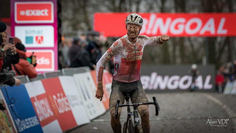 Du côté des élites hommes, la lutte a été âpre durant de longs tours entre le revenant Toon Aerts (Deschacht-Hens-FPS), le jeune Emiel Verstrynge (Crelan-Corendon) et le leader de la Coupe du monde Michael Vanthourenhout (Pauwels Sauzen-Bingoal). Le dernier tour a finalement décidé du vainqueur : Verstrynge a été le premier à lâcher prise, physiquement puis en raison d’une chute avant la route des canons ; Aerts a ensuite dû céder la première place dans le dévers en raison d’une seconde chute en moins d’une heure sur les racines en fin de sentier. Vanthourenhout n’avait plus qu’à tenir sur ses deux roues pour finir le travail et s’offrir son deuxième succès du week-end, le deuxième consécutif en Coupe du monde (après Dublin).