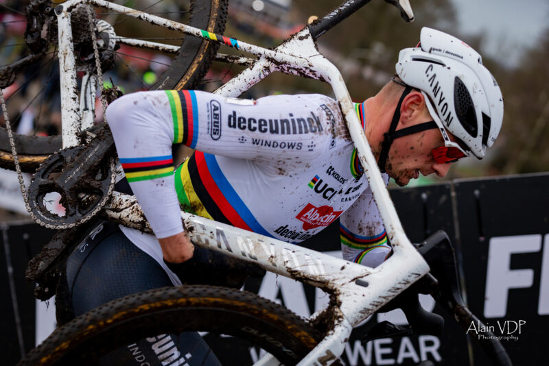 Le public était une nouvelle fois en nombre dans la cité néerlandaise d’Hoogerheide, habituel accueil de la dernière manche de la Coupe du monde de cyclo-cross. Ce Grand Prix Adrie van der Poel, sur le circuit des championnats du monde de 2023, n’a une nouvelle fois pas échappé à un certain Mathieu van der Poel (Alpecin-Deceuninck). Le champion du monde a levé les bras pour la huitième fois sur cette ligne d’arrivée en pente, au terme d’une one-man show particulièrement convaincant à une semaine de remettre de son maillot arc-en-ciel en jeu. Il a devancé de plus d’une minute et demie le Belge Michael Vanthourenhout (Pauwels Sauzen-Bingoal), vainqueur final de la Coupe du monde pour la première fois de sa carrière après deux troisièmes places et deux deuxièmes places.