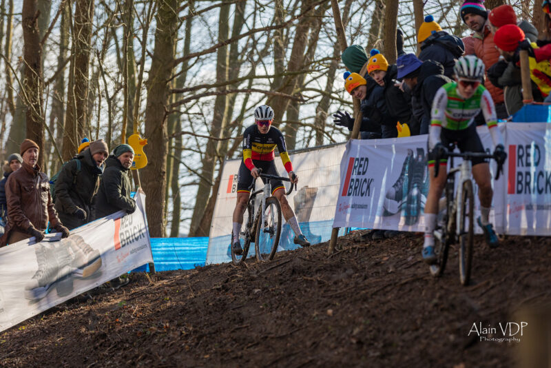 La saison de cyclo-cross touche doucement à sa fin, et dans le froid bruxellois, les spécialistes des labourés se sont retrouvés une avant-dernière fois sur le campus de la Vrije Universiteit Brussel (VUB) pour la dernière manche du Trophée X2O Badkamers. Le fameux challenge de régularité était déjà assuré chez les élites femmes pour la Néerlandaise Lucinda Brand (Baloise Glowi Lions), déjà vainqueure de la Coupe du monde et du Superprestige cette saison, et chez les élites hommes pour le Belge Eli Iserbyt (Pauwels Sauzen-Cibel Clémentines), maigre récompense d’une saison mi-figue mi-raisin.