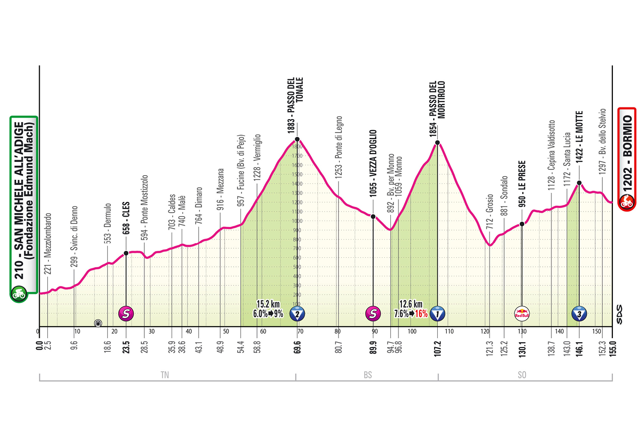 - Mercredi 28 mai 2025 – 17e étape : San Michele all’Adige/Fondation Edmund Mach > Bormio (155 km)