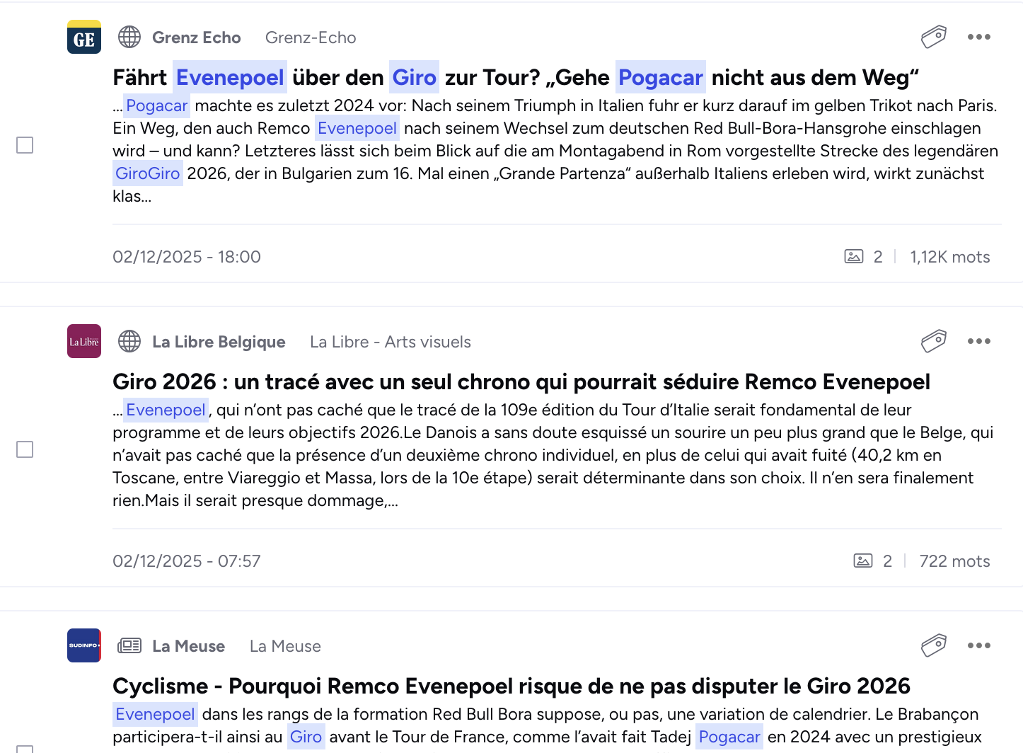 Durant cette période de calme, les sites d’actualités cyclistes et autres influenceurs habitués de la reprise rapide cherchent aussi la moindre miette qui leur permettrait d’alimenter leur fil. Cela peut aller du nouveau maillot aperçu lors d’un stage d’entraînement en Espagne à la première sortie d’entraînement d’une des stars du peloton, en passant par l’interview dans laquelle l’une ou l’autre lève un coin du voile sur son prochain agenda. C’est ce type d’actualités qui semble finalement animer la presse spécialisée durant cette période maigre. Un article sur Remco Evenepoel qui pourrait participer au Giro si les rumeurs sur le parcours se confirment. Le lendemain, un autre papier sur le double champion olympique qui ne devrait pas participer au Tour d’Italie car le tracé se veut plus difficile qu’attendu. Un suivant sur Tadej Pogacar qui aurait plutôt les classiques en tête que le Tour de France. Un prochain sur le Slovène qui déciderait finalement de partir sur un schéma classique en vue de la Grande Boucle. Et le plus souvent sans l’avis du ou de la principal·e intéressé·e.