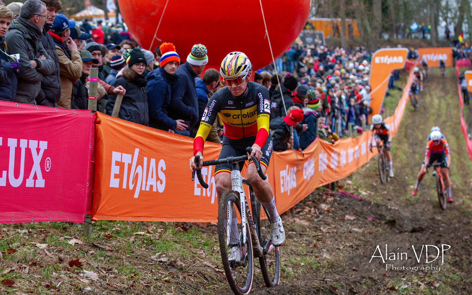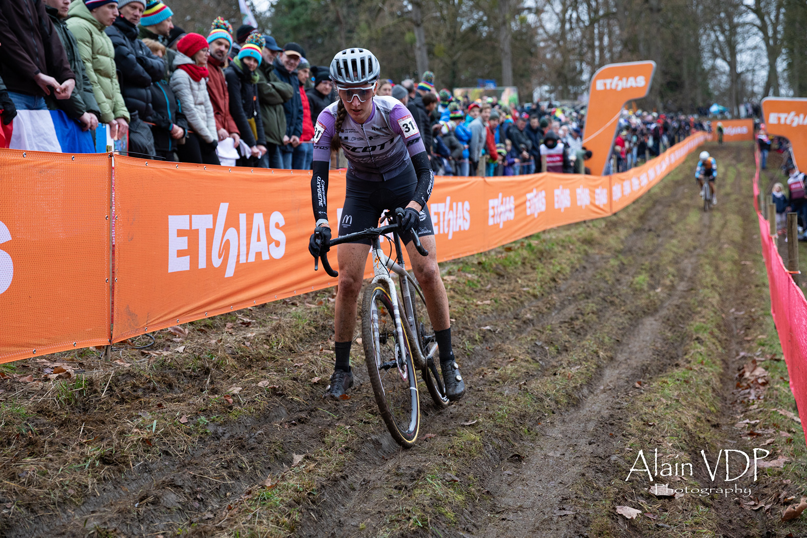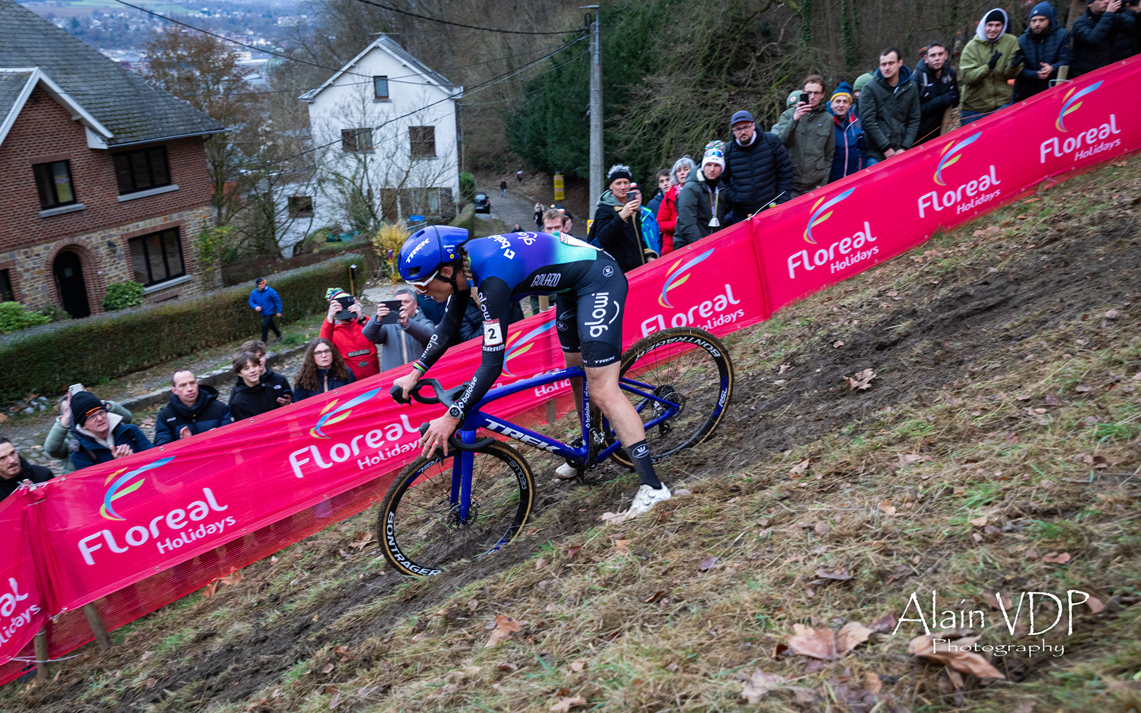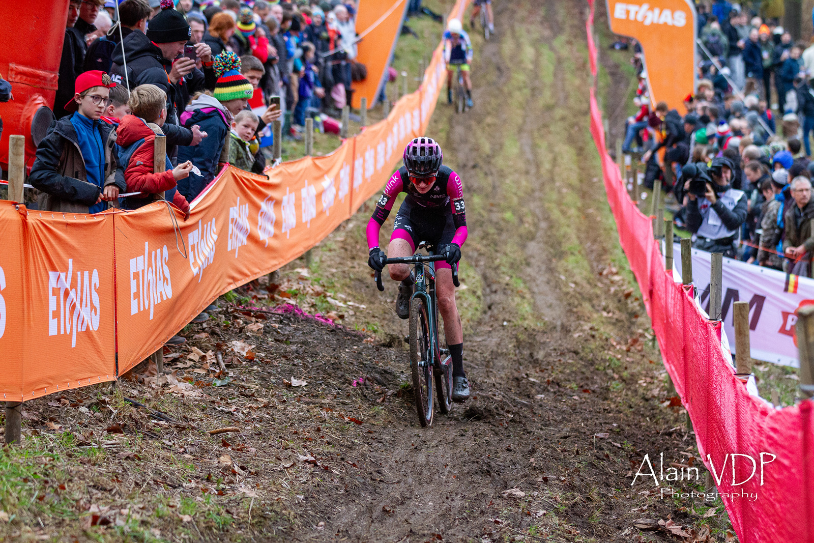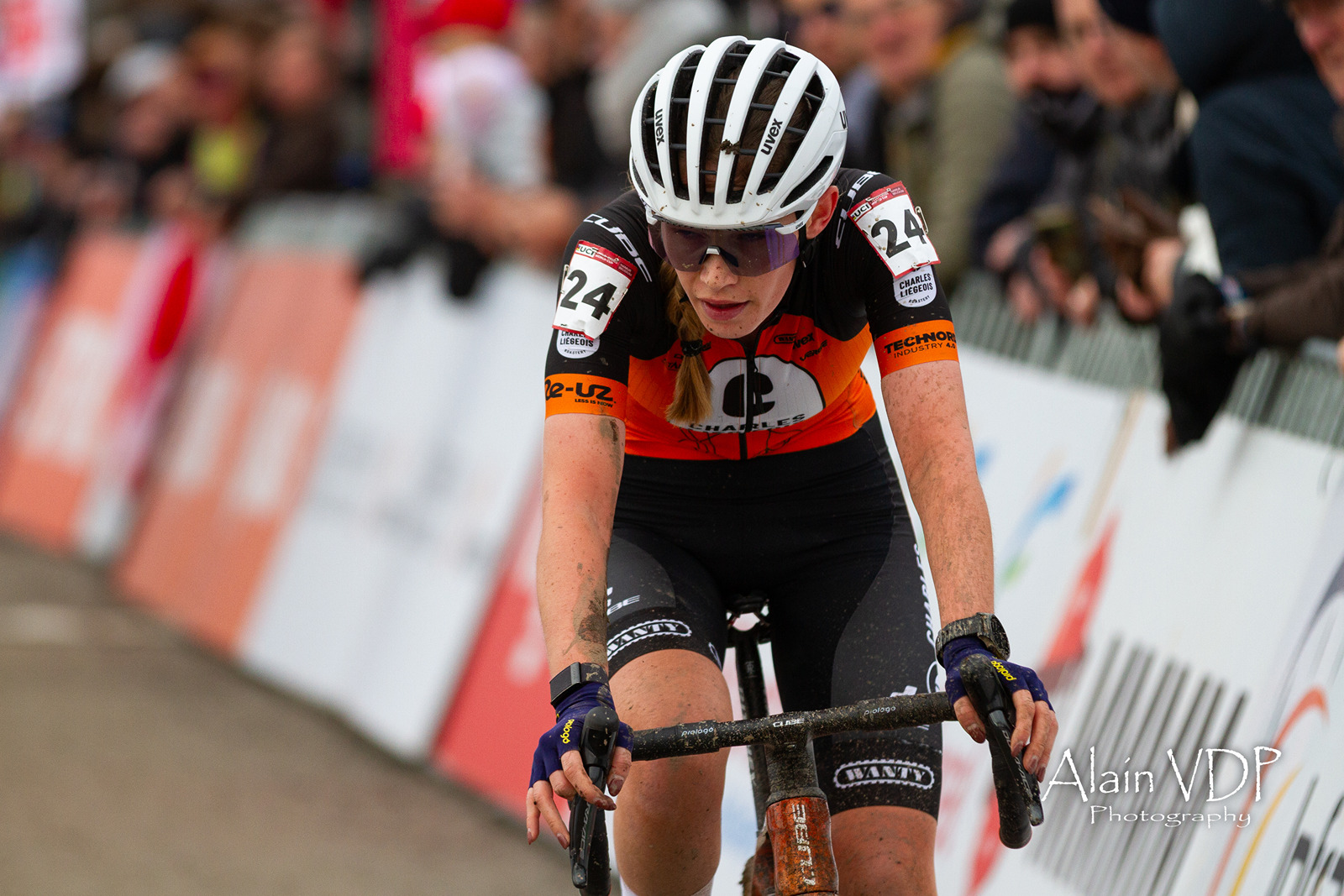 « Juliiiine », « Emeline, go ! », « Antoine, allez ! » : les prénoms ont fusé dans l’enthousiasme ébouriffant de la Citadelle de Namur. Il est rare de voir des spécialistes wallonnes et wallons du cyclo-cross disputer la Coupe du monde de cyclo-cross dans la capitale wallonne, alors à l’annonce de leur départ, le public ne s’y est pas trompé et a encouragé tant et plus les personnalités locales dont l’objectif était principalement de faire bonne figure face aux meilleurs professionnels de la discipline. Du côté des élites femmes, le sélectionneur fédéral Angelo Declercq avait décidé de mettre en avant la championne de Wallonie-Bruxelles Juline Delcommune, une Engissoise de 21 ans qui a déjà participé par le passé à une trentaine de cyclo-cross avec les professionnels depuis… 2022. La protégée de Gérard Bulens, au sein du Team Wilink-Brussels Cycling, comptait bien tenter de profiter de l’ambiance, mais un départ en dernière ligne n’a pu lui permettre de jouer les premiers rôles. « Je suis un peu déçue. J’ai été arrêtée à deux tours de la fin », a-t-elle confié à l’arrivée. « En démarrant dernière, c’est difficile de garder une belle position. Et Namur, c’est hyper dur, c’est technique. Tout le monde me dit que c’est énorme, déjà, d’être ici, sélectionnée, mais pour moi, ce n’est jamais suffisant. (…) On m’arrête à 35 minutes de course, mais pour moi, ce n’est pas assez pour montrer toutes mes capacités sur un tel parcours. Plus j’approche des 50 minutes, mieux c’est. Dommage donc… »