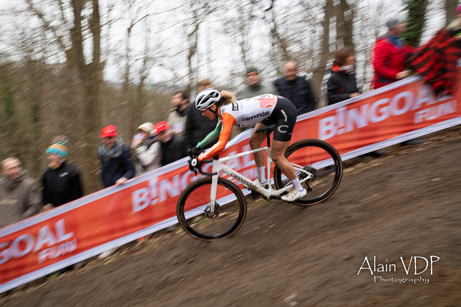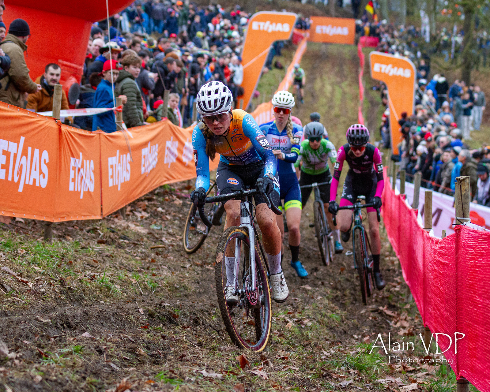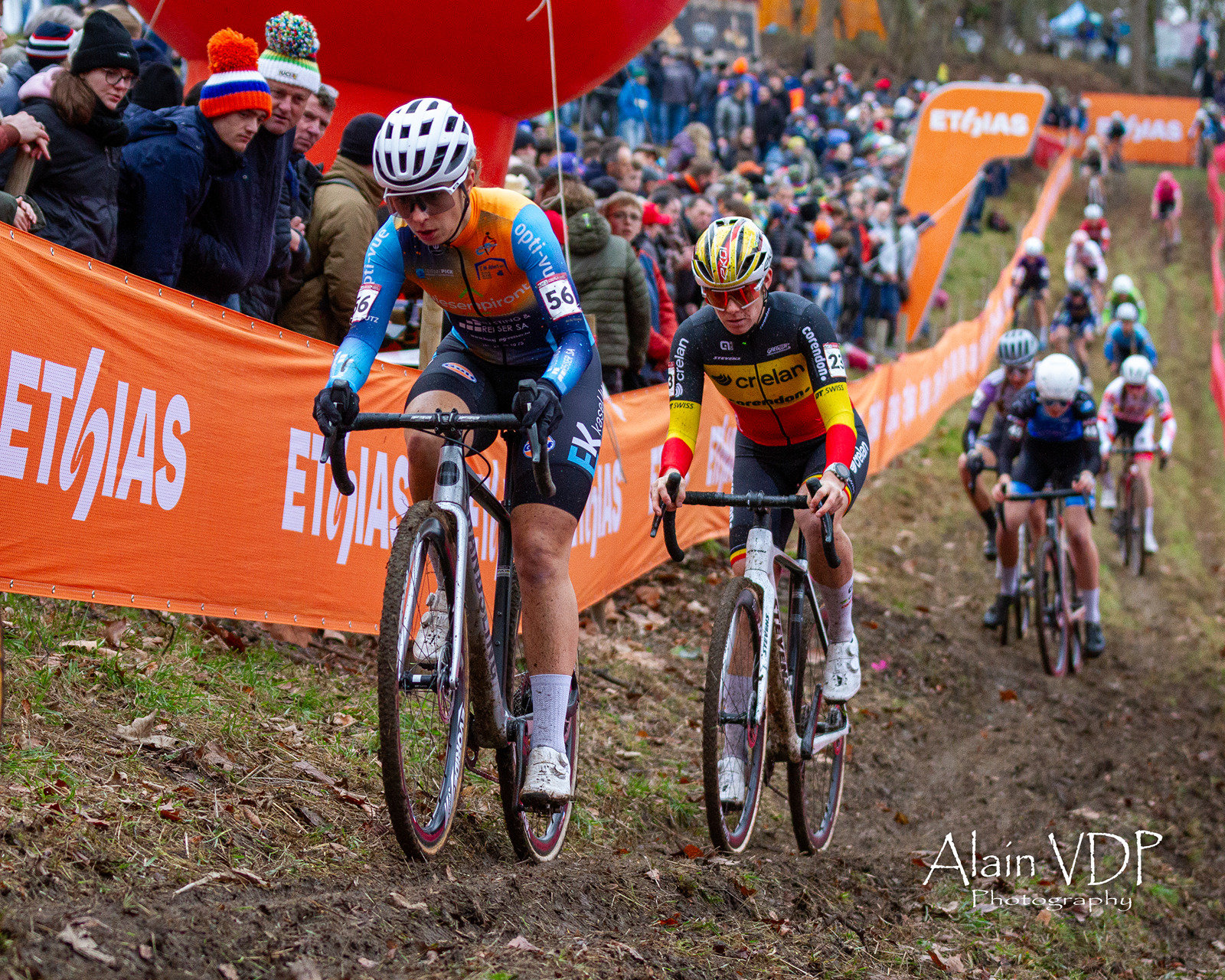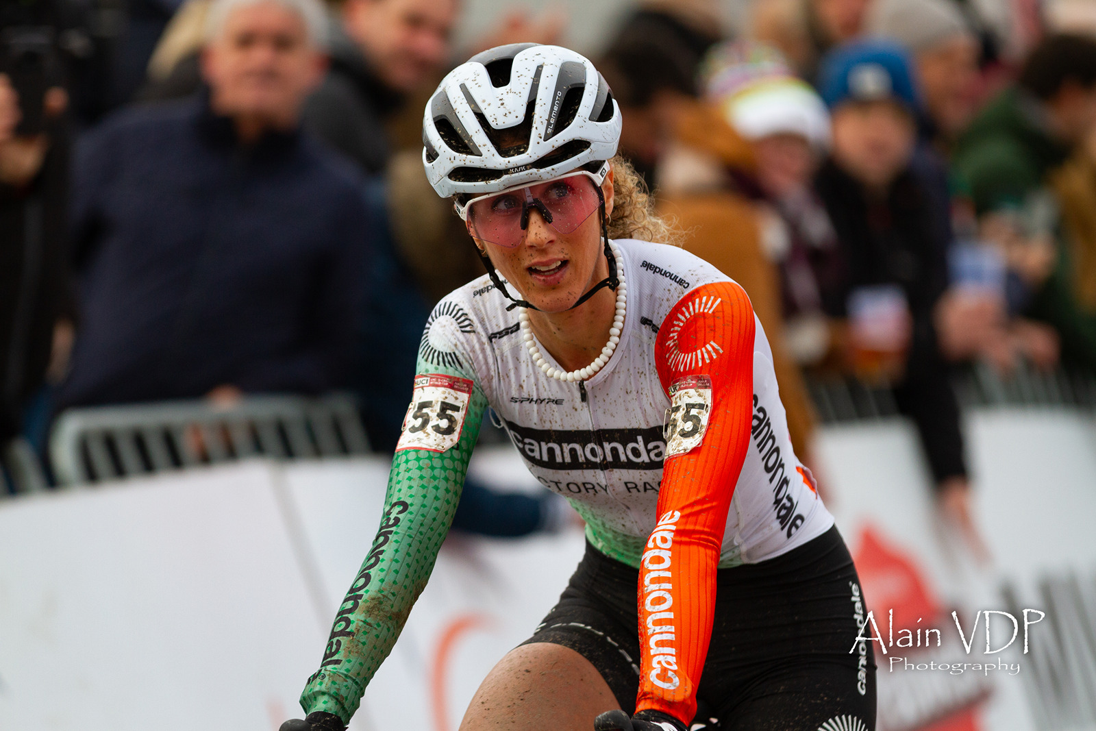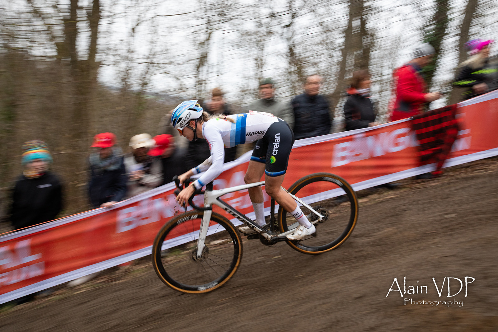 Il n’y avait cependant rien à faire face à la femme de cette saison, la Néerlandaise Lucinda Brand (Baloise Glowi Lions), encore une fois impériale de bout en bout. Elle a vu un instant la leader de la Coupe du monde Aniek van Alphen (777 Racing) revenir à une quinzaine de secondes avant de repartir de plus belle. Les deux premières places étaient ainsi scellées, alors que la championne de France Amandine Fouquenet (Arkéa-B&B Hôtels) réalisait une sacrée performance pour glaner la troisième place, au bout d’un cross parfaitement géré sur le plan technique. La championne des Pays-Bas Puck Pieterse (Fenix-Deceuninck) réalisait, elle, le chemin qu’il reste à parcourir pour revenir au plus haut niveau, mais sa quatrième place est encourageante pour la suite de l’hiver. La Suissesse Jolanda Neff (Cannondale Factory Racing), de retour après un hiver blanc, affichait pour sa part toute son expérience pour accrocher le Top 5 dès sa première manche de Coupe du monde de la saison. La championne de Belgique Marion Norbert-Riberolle (Crelan-Corendon), sur un parcours qui lui convient moins bien, a de son côté connu un départ très difficile, la reléguant près du Top 30, avant de réaliser une grande remontée jusqu’à la 13e place : « C’est toujours dur sur la première bosse pour moi. Je suis contente parce que d’habitude, ça va moins bien à Namur. Je suis contente finalement. Et cette année, il n’y avait jamais autant de monde, je n’ai jamais connu ça, ça m’a donné des ailes ! »