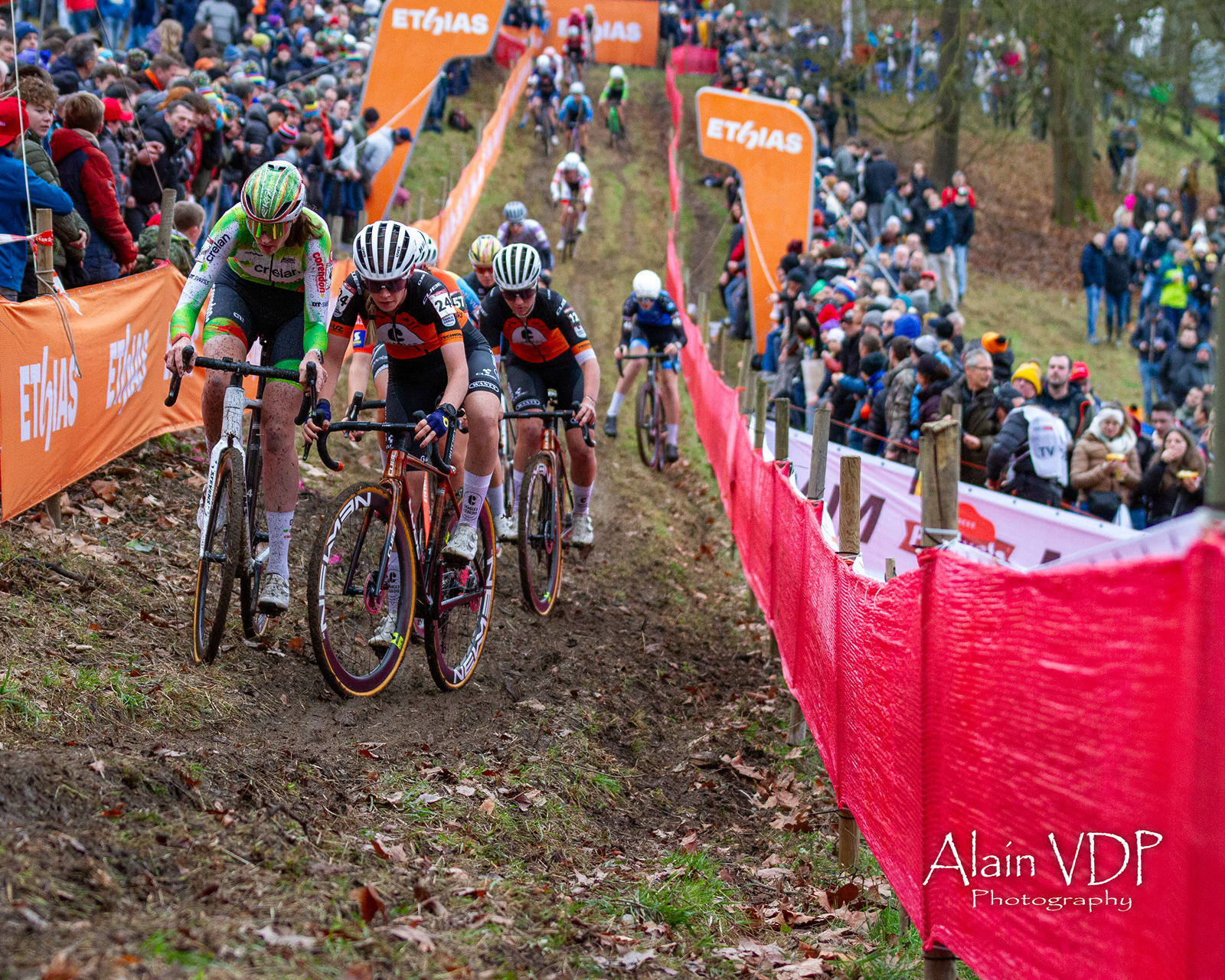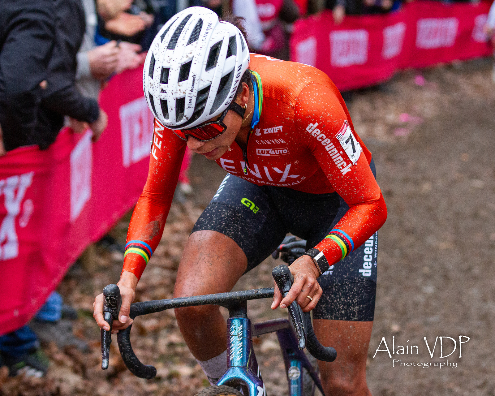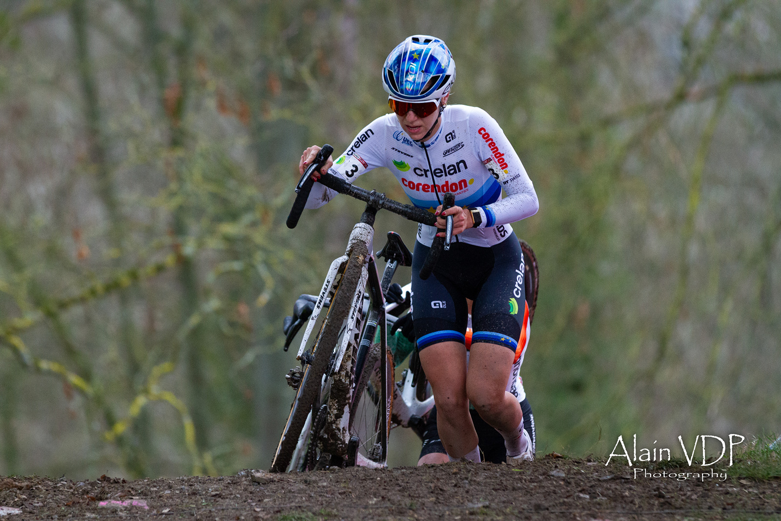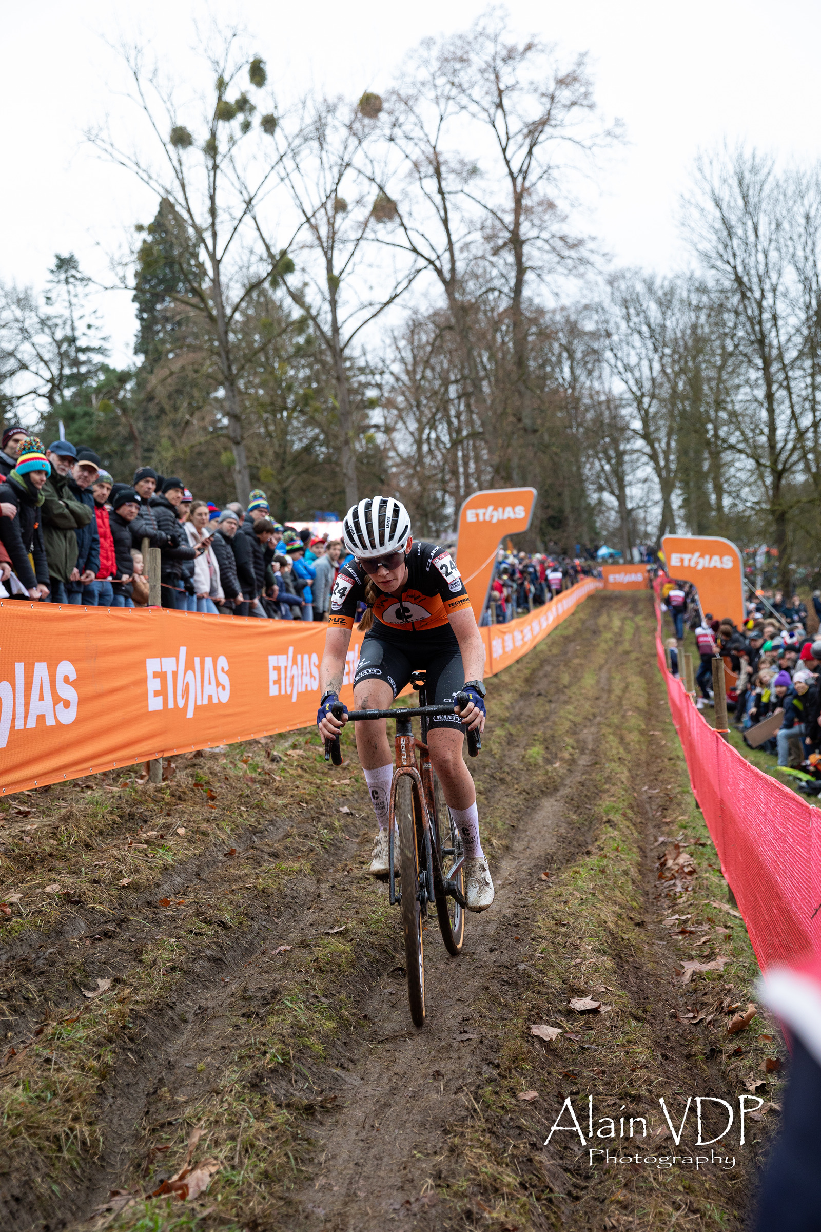 Il n’y avait cependant rien à faire face à la femme de cette saison, la Néerlandaise Lucinda Brand (Baloise Glowi Lions), encore une fois impériale de bout en bout. Elle a vu un instant la leader de la Coupe du monde Aniek van Alphen (777 Racing) revenir à une quinzaine de secondes avant de repartir de plus belle. Les deux premières places étaient ainsi scellées, alors que la championne de France Amandine Fouquenet (Arkéa-B&B Hôtels) réalisait une sacrée performance pour glaner la troisième place, au bout d’un cross parfaitement géré sur le plan technique. La championne des Pays-Bas Puck Pieterse (Fenix-Deceuninck) réalisait, elle, le chemin qu’il reste à parcourir pour revenir au plus haut niveau, mais sa quatrième place est encourageante pour la suite de l’hiver. La Suissesse Jolanda Neff (Cannondale Factory Racing), de retour après un hiver blanc, affichait pour sa part toute son expérience pour accrocher le Top 5 dès sa première manche de Coupe du monde de la saison. La championne de Belgique Marion Norbert-Riberolle (Crelan-Corendon), sur un parcours qui lui convient moins bien, a de son côté connu un départ très difficile, la reléguant près du Top 30, avant de réaliser une grande remontée jusqu’à la 13e place : « C’est toujours dur sur la première bosse pour moi. Je suis contente parce que d’habitude, ça va moins bien à Namur. Je suis contente finalement. Et cette année, il n’y avait jamais autant de monde, je n’ai jamais connu ça, ça m’a donné des ailes ! »