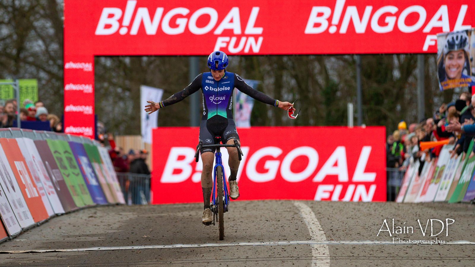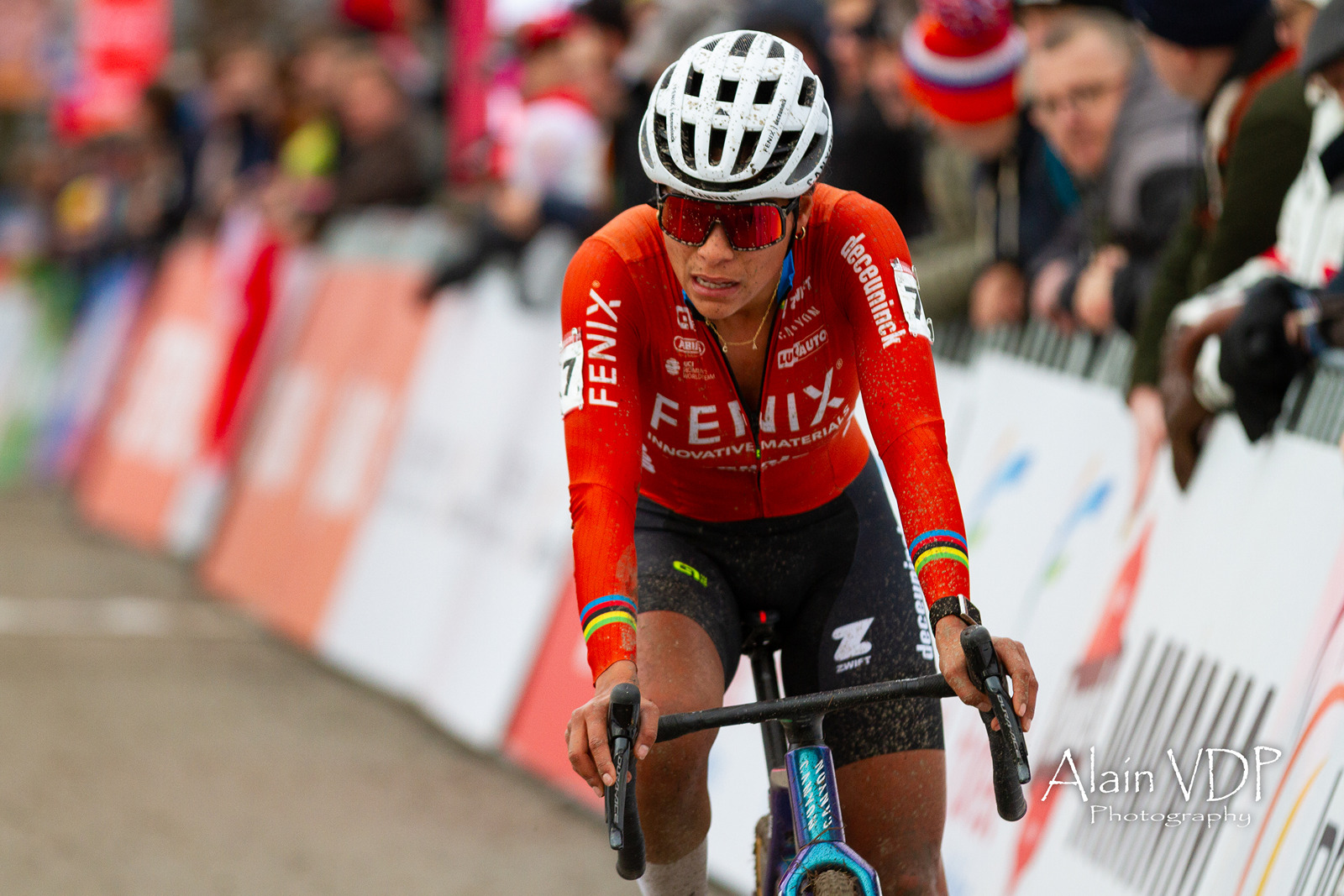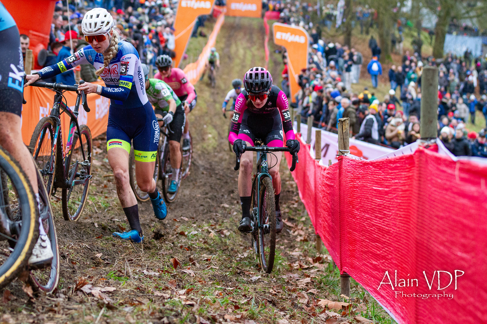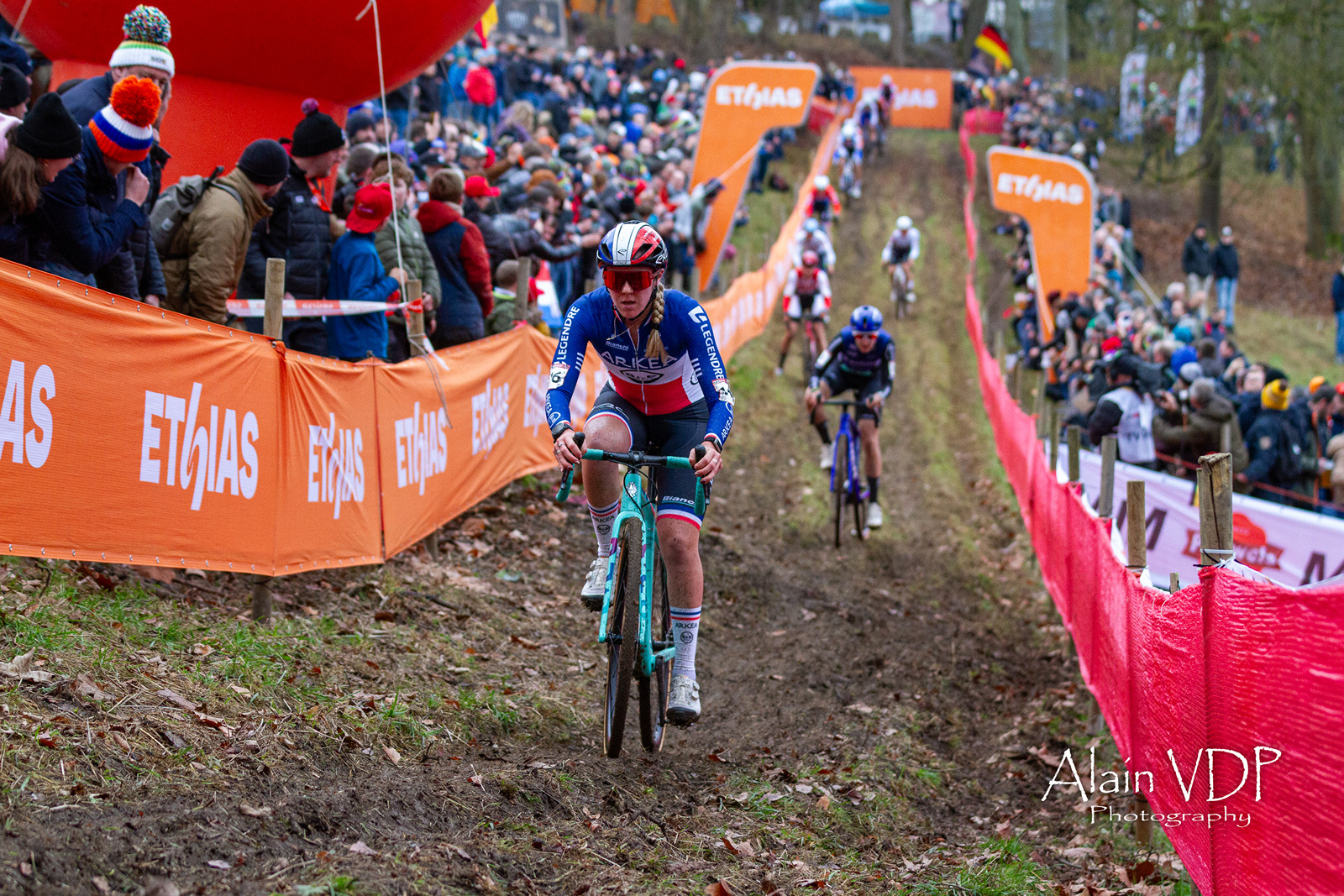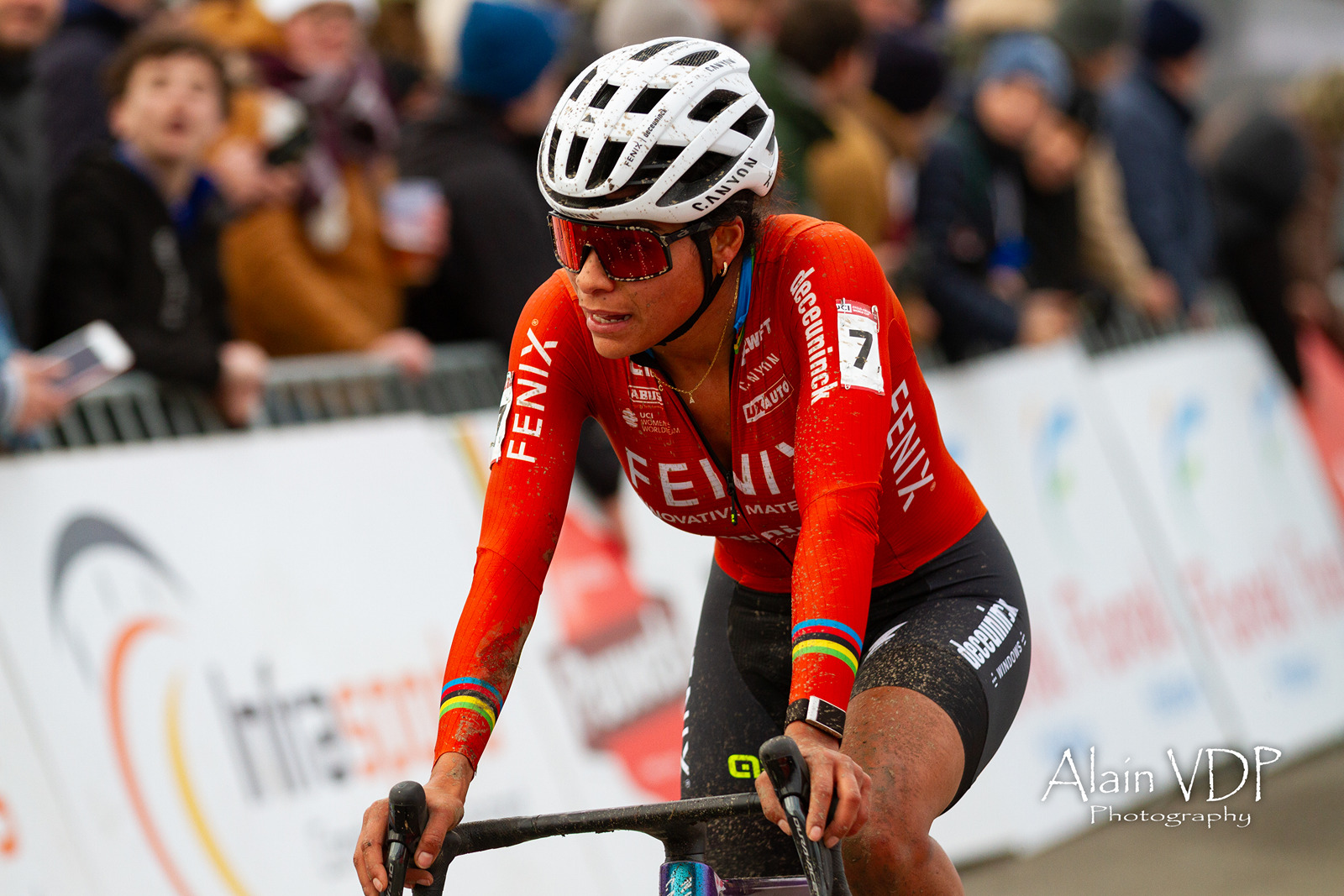 Il n’y avait cependant rien à faire face à la femme de cette saison, la Néerlandaise Lucinda Brand (Baloise Glowi Lions), encore une fois impériale de bout en bout. Elle a vu un instant la leader de la Coupe du monde Aniek van Alphen (777 Racing) revenir à une quinzaine de secondes avant de repartir de plus belle. Les deux premières places étaient ainsi scellées, alors que la championne de France Amandine Fouquenet (Arkéa-B&B Hôtels) réalisait une sacrée performance pour glaner la troisième place, au bout d’un cross parfaitement géré sur le plan technique. La championne des Pays-Bas Puck Pieterse (Fenix-Deceuninck) réalisait, elle, le chemin qu’il reste à parcourir pour revenir au plus haut niveau, mais sa quatrième place est encourageante pour la suite de l’hiver. La Suissesse Jolanda Neff (Cannondale Factory Racing), de retour après un hiver blanc, affichait pour sa part toute son expérience pour accrocher le Top 5 dès sa première manche de Coupe du monde de la saison. La championne de Belgique Marion Norbert-Riberolle (Crelan-Corendon), sur un parcours qui lui convient moins bien, a de son côté connu un départ très difficile, la reléguant près du Top 30, avant de réaliser une grande remontée jusqu’à la 13e place : « C’est toujours dur sur la première bosse pour moi. Je suis contente parce que d’habitude, ça va moins bien à Namur. Je suis contente finalement. Et cette année, il n’y avait jamais autant de monde, je n’ai jamais connu ça, ça m’a donné des ailes ! »