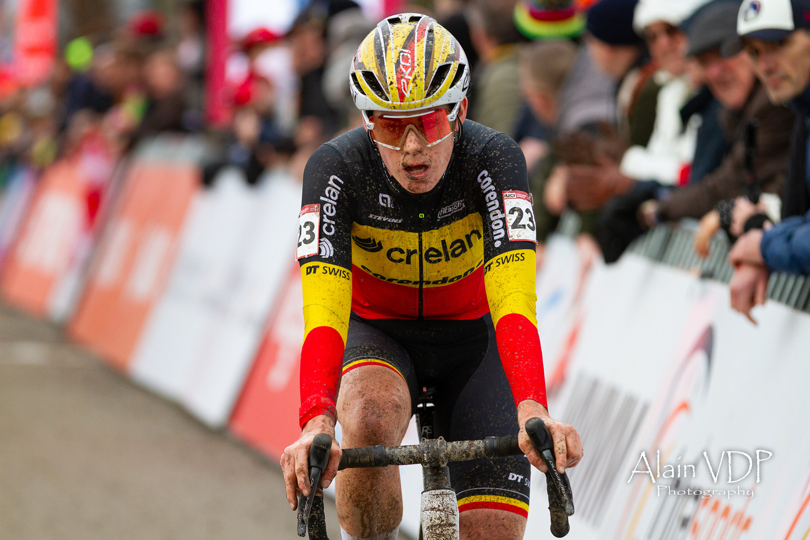 Côté masculin, tous les regards namurois étaient posés sur Antoine Jamin, l’espoir du Team BH Wallonie. Le local de 20 ans avait marqué les esprits avec une cinquième place sur la course des juniors lors des championnats d’Europe sur cette même Citadelle en 2022 et comptait bien tenter de se faire une place malgré son jeune âge et le plateau présent. Finalement 32e à l’arrivée, à un peu plus de quatre minutes du champion du monde Mathieu van der Poel, Jamin restait malgré tout sur sa faim au moment de franchir la ligne. « J’ai fait un bon départ. Après, j’ai voulu un peu me canaliser, je me suis rendu compte que je n’avais pas la plus grande forme. Je suis déjà content de finir la course à une bonne place, même si j’espérais un peu mieux », déclarait-il après avoir repris son souffle sous les acclamations de la foule. « C’est le départ qui allait déterminer ma place. Au fil des tours, je perdais un peu de temps, mais j’ai fait le maximum. (…) Refaire la même chose qu’en juniors, cela allait être difficile, mais j’ai essayé. J’étais un peu moins en forme que prévu ».