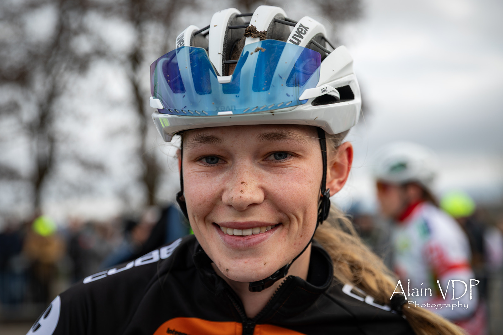 L’expérience était aussi impressionnante pour la multiple championne de Belgique de VTT cross-country Emeline Detilleux. Originaire de la province, elle a pu conclure en 30e position, pour… le troisième cyclo-cross de sa carrière professionnelle. « Je suis contente parce que l’objectif était de m’amuser, et c’est ce que j’ai fait », a-t-elle confié avec le sourire à l’arrivée. « J’ai grandi assez vite, je suis déjà en Coupe du monde, je dois donc juste être contente de ma course. Top 30 pour quelqu’un qui n’a plus touché son vélo de cyclo-cross depuis trois semaines et qui découvre la discipline, c’est pas mal ! » Celle qui est partie de la dernière ligne également a conservé sa place autour des 30 premières tout au long de la course a profité de ses qualités techniques pour gérer au mieux et finalement découvrir un sport pour lequel elle pourrait finalement se consacrer un peu plus dans les prochains mois. « Je pense que je peux faire de belles choses. Et la fédération est assez contente que je veuille m’impliquer dans le cyclo-cross. (…) Je suis fière d’avoir pu prendre cette opportunité », ajoute Detilleux qui participera aux Superprestige et Trophée X2O Badkamers de la période des fêtes.