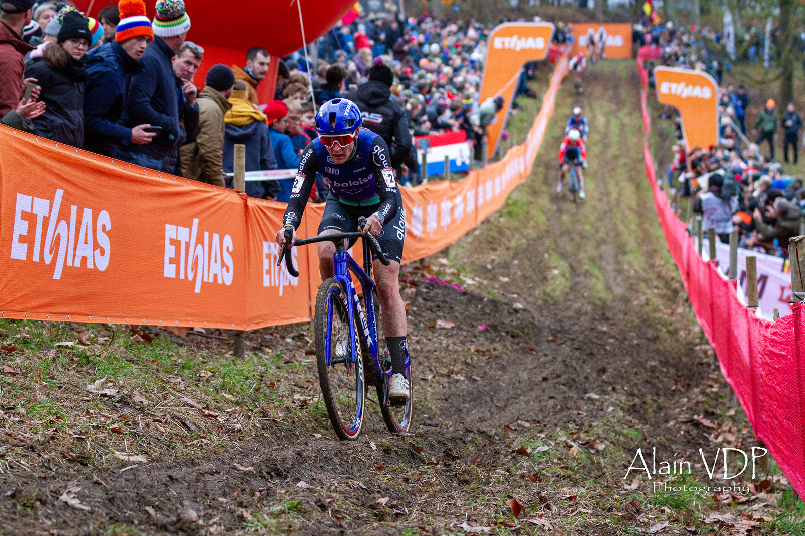 Devant, le suspense a longtemps régné. Pour sa reprise, Mathieu van der Poel a confirmé ses déclarations selon lesquelles il n’était pas dans la même forme qu’à son retour dans les labourés, l’an dernier. Le champion du monde a longtemps été malmené par Thibau Nys (Baloise Glowi Lions), et même un temps par Michael Vanthourenhout (Pauwels Sauzen-Altez Industriebouw) et Lars van der Haar (Baloise Glowi Lions). Dans le dernier tour, une glissade et une chute de Nys a finalement permis au Néerlandais de s’isoler dans les parties plus explosives et de signer un sixième succès en sept courses à Namur. Le champion de Belgique et leader de la Coupe du monde conservait au moins la deuxième place devant Vanthourenhout, confirmant un cap franchi pour la suite de l’hiver.