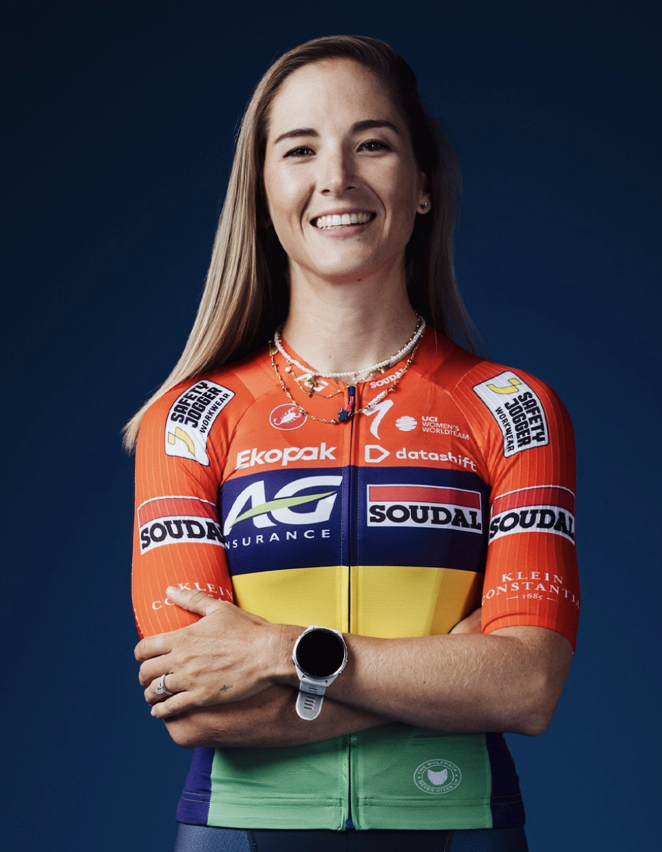 • La formation AG Insurance-Soudal propose le même changement pour 2026 : un peu de vert pour agrémenter le maillot de la saison dernière. La grande nouveauté concerne le maillot de championne de l’Île Maurice de Kim Le Court, désormais bien moins proche de celui de championne du monde.