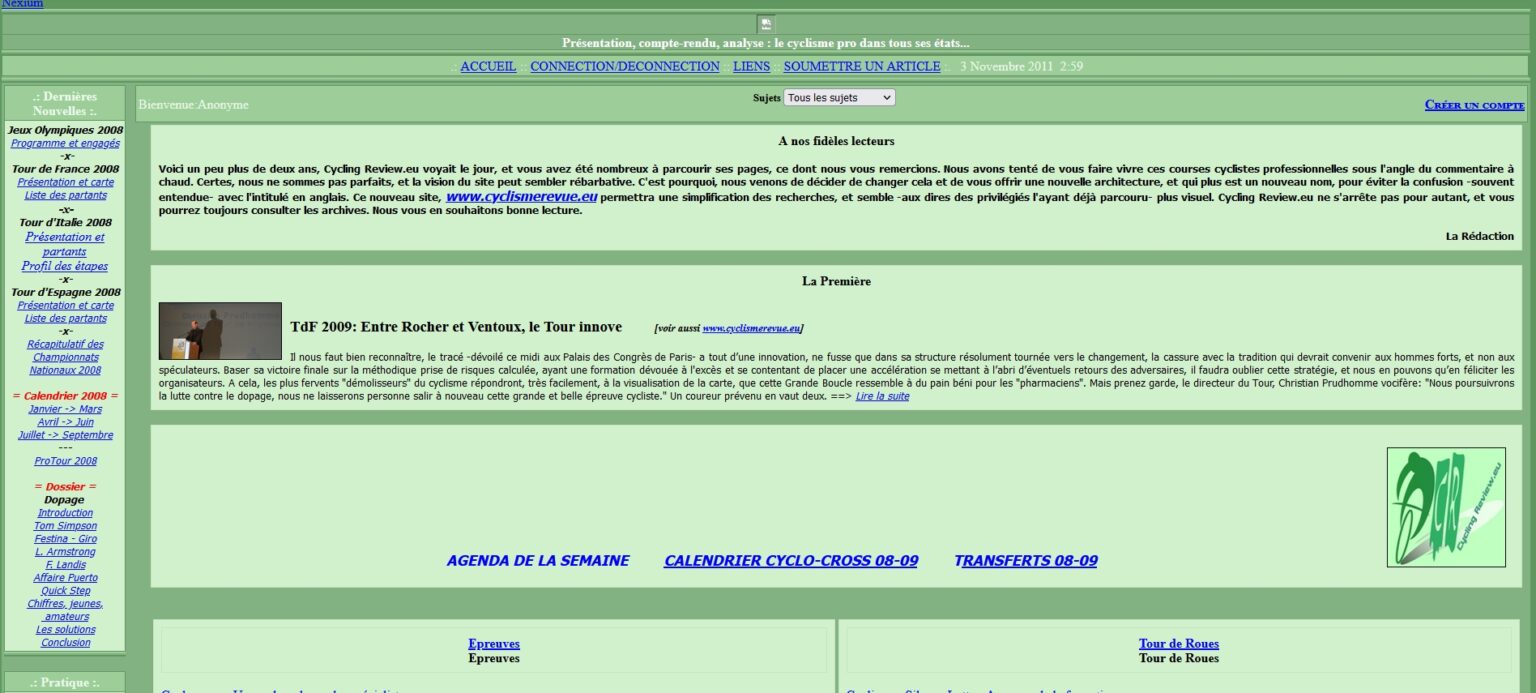 - Malgré un enchaînement de pubs sur tous les articles, le site DirectVélo, mené par une troupe de bénévoles, est un incontournable pour le cyclisme régional français et belge, mais pas seulement. Les passionnés derrière ce média offrent une quantité d’informations détaillées, même sur le peloton professionnel. Leur suivi du cyclisme féminin est également bien meilleur que sur bon nombre d’autres médias spécialisés. Le lien est à suivre par ici.