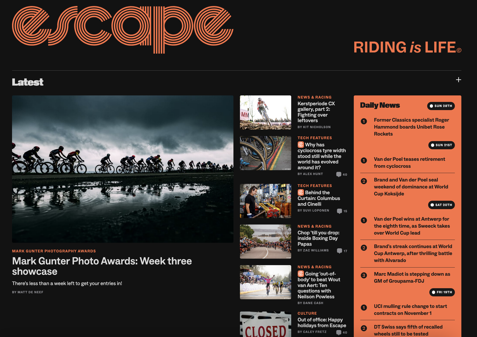 - On passe désormais aux médias anglophones. Le premier qui me semble obligatoire de citer est Escape Collective, créé il y a seulement trois ans par des anciens de CyclingTips. Leur objectif de mener un média cycliste indépendant est louable, et le travail réalisé derrière est impressionnant. S’il y a bon nombre d’articles consacrés à la technologie ou au cyclisme amateur, la couverture du cyclisme professionnel est particulièrement bonne, avec de nombreuses enquêtes qui permettent de sacrées révélations, comme l’utilisation de monoxyde de carbone par certains leaders. Je recommande aussi leurs newsletters “Spin Cycle” (pour les dernières nouvelles insolites ou un regard plus “insolent” sur l’actualité) et “Wheel Talk” (sur le cyclisme féminin). L’abonnement est à partir de 10,99 euros par mois. Si vous savez lire l’anglais ou utiliser un traducteur intelligemment, il ne faut pas hésiter ! Le lien est à suivre par ici.