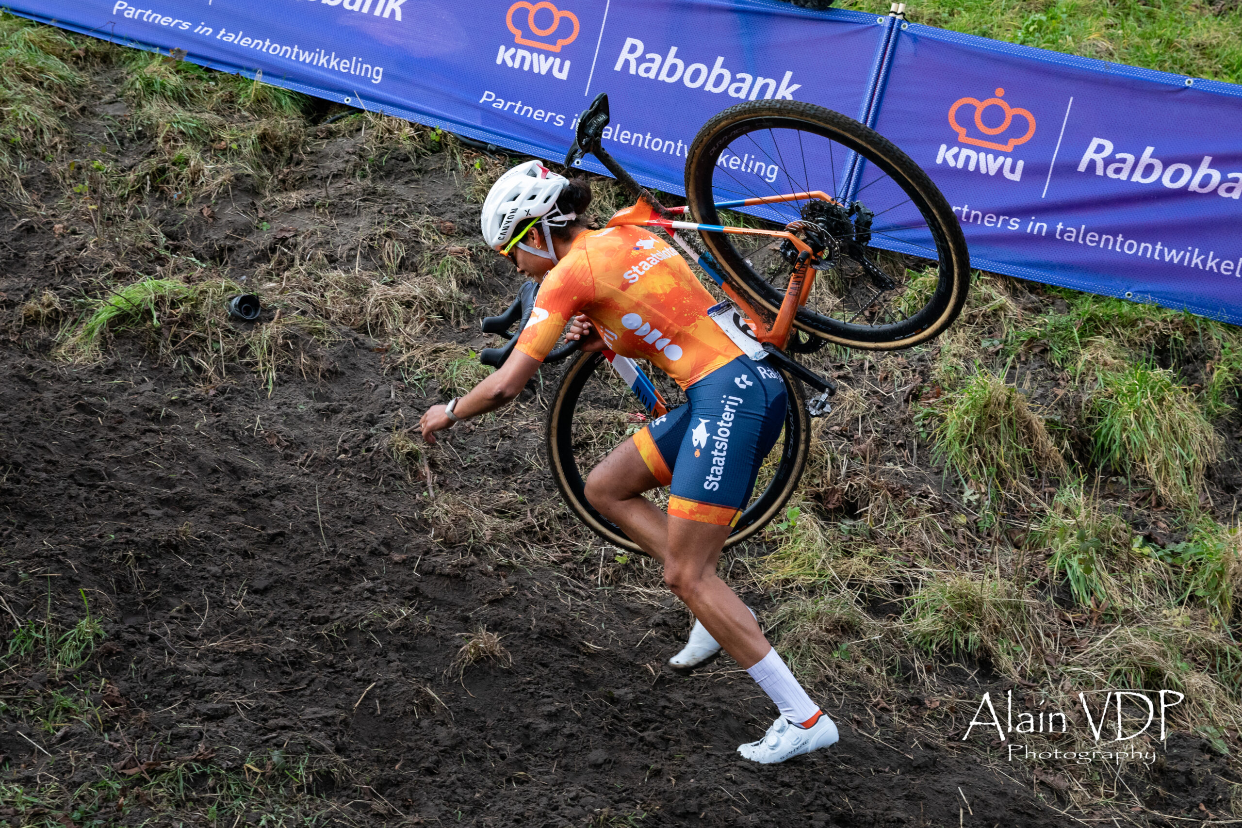 La Néerlandaise Leonie Bentveld lors de la course espoirs femmes des championnats du monde de cyclo-cross à Hulst, le 1er février 2026 – Photo : Alain Vandepontseele/Alain VDP Photography