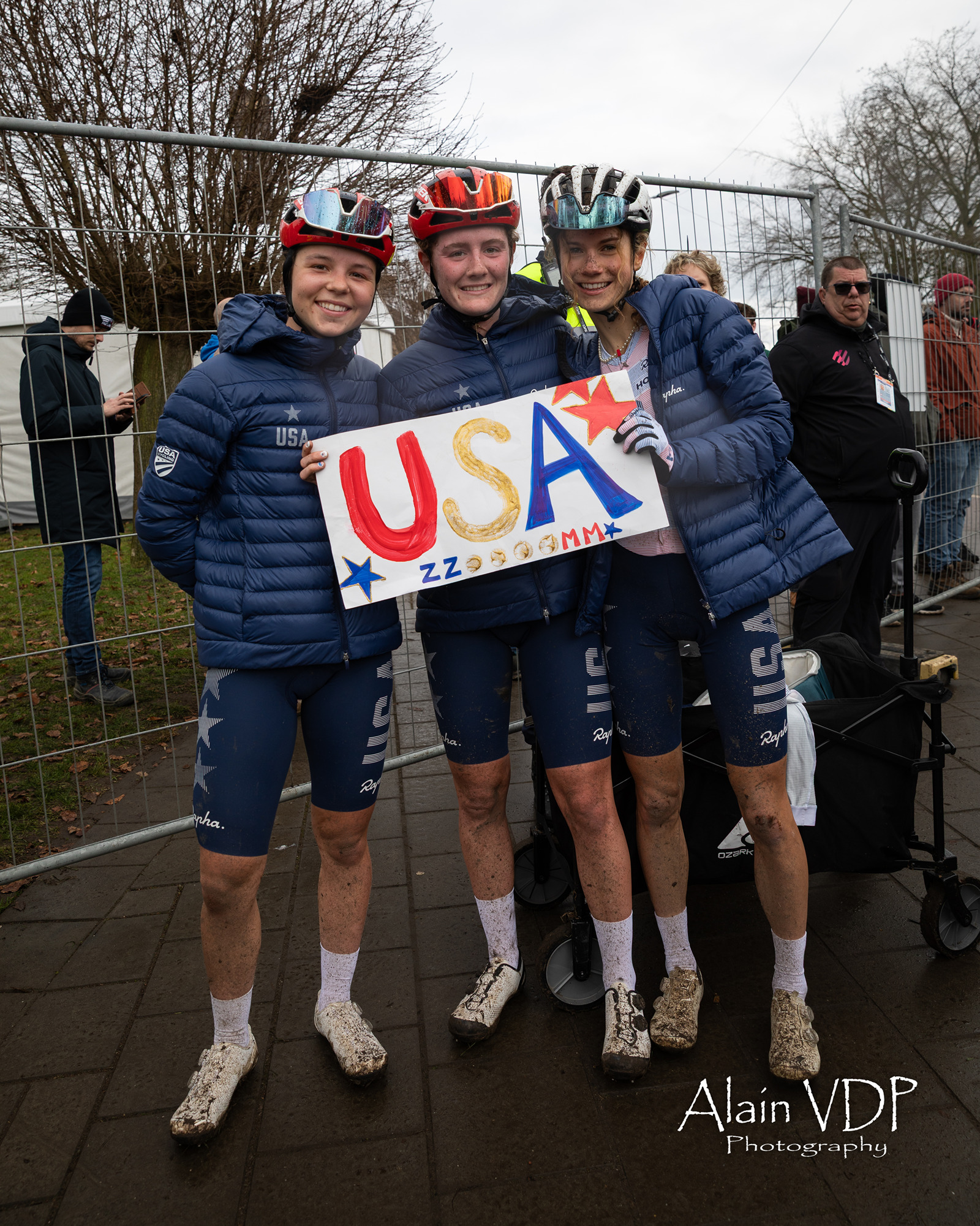 Les représentantes des États-Unis sur la course espoirs femmes des championnats du monde de cyclo-cross à Hulst, le 1er février 2026 – Photo : Alain Vandepontseele/Alain VDP Photography