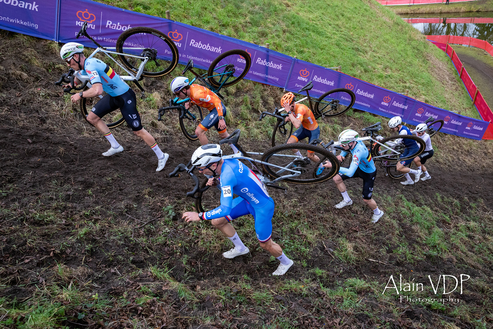 Le groupe des poursuivants lors de la course des élites hommes des championnats du monde de cyclo-cross à Hulst, le 1er février 2026 – Photo : Alain Vandepontseele/Alain VDP Photography