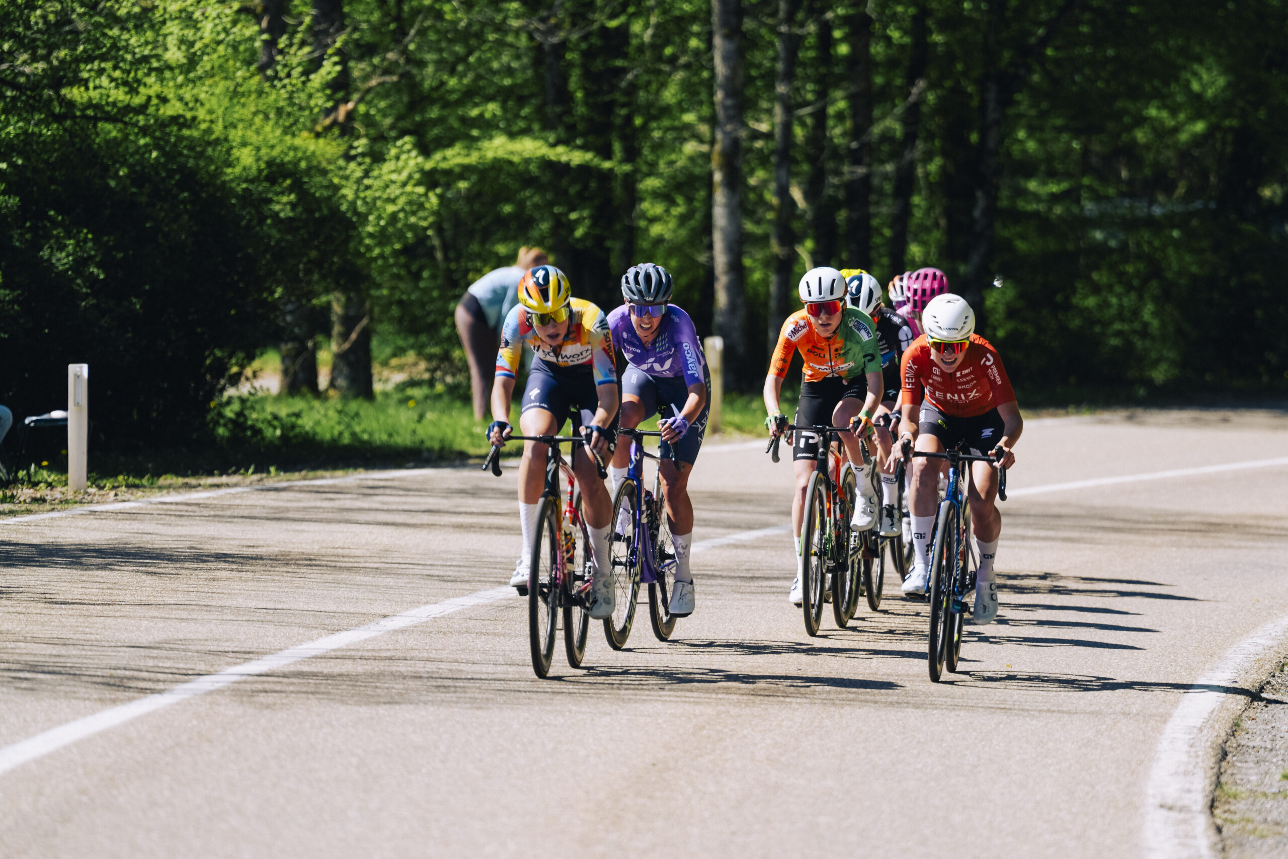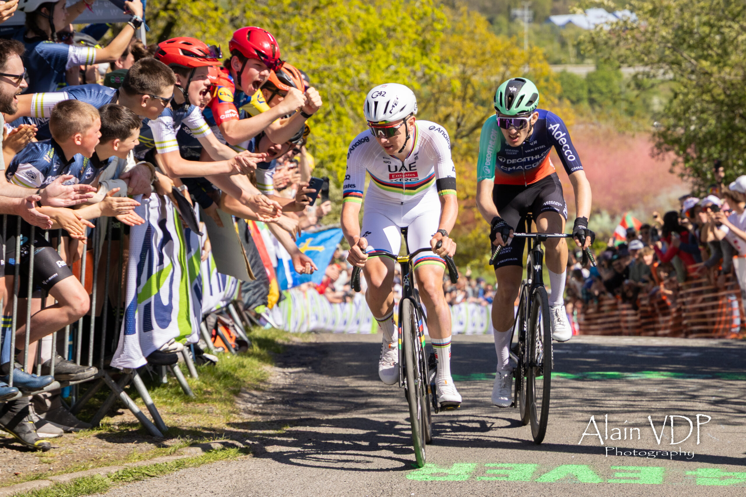 Alors, la suite a été plus convenue. Les UAE Team Emirates-XRG, même amputés de trois coureurs qui ont dû mener la poursuite derrière Evenepoel et ses compagnons d’échappée, ont placé un tempo très soutenu. Le Slovène Tadej Pogačar (UAE Team Emirates-XRG) a accéléré dans la côte de la Redoute pendant que le reste suffoquait. Mais cette fois, le Français Paul Seixas (Decathlon-CMA CGM), le nouveau phénomène du peloton âgé de 19 ans, suivait le champion du monde. Et le relayait jusqu’à la côte de la Roche aux Faucons, où Pogačar usait de sa résistance sur les efforts intenses de plusieurs minutes pour faire céder son rival du jour. La quatrième victoire se situait une quinzaine de kilomètres plus loin, les bras levés vers le ciel pour son ancien équipier Cristian Camilo Muñoz, décédé vendredi après une septicémie consécutive à une chute sur le Tour du Jura, la semaine précédente.