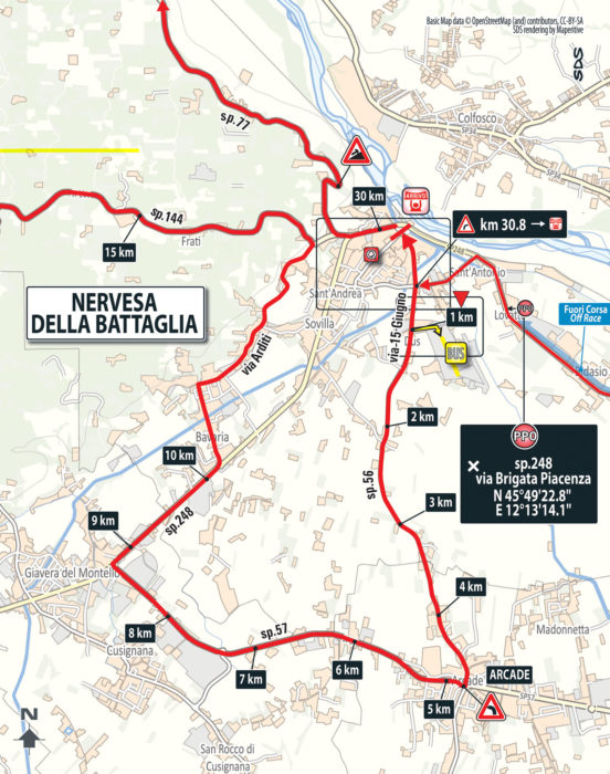 Arrivée : vers 17h12 sur la via Roma à Nervesa della Battaglia.