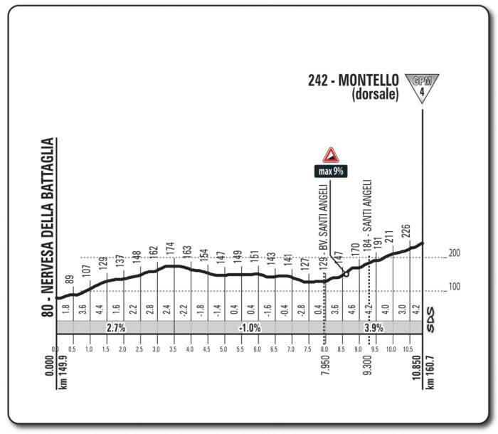 Km 160,7 – 4e cat. : Montello (2,9 km à 3,9%)