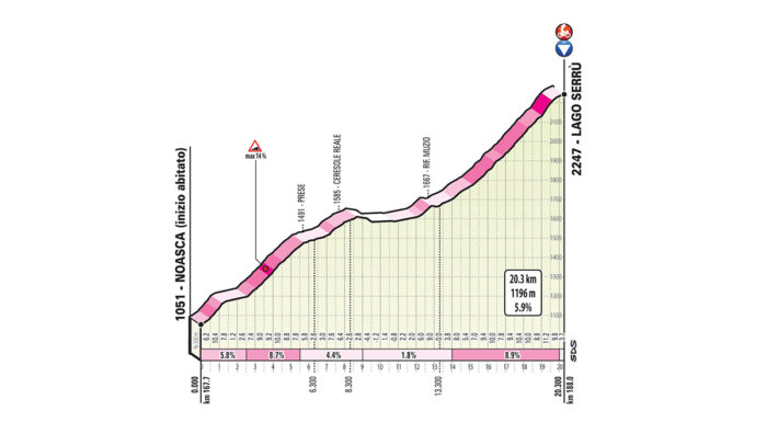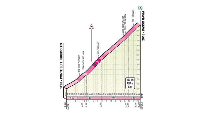 Le peloton aura même droit à quelques ascensions bien connues du calendrier. Lors de la 15e étape vers Côme, la plus longue de ce Giro, les coureurs traverseront les routes du traditionnel Tour de Lombardie avec son final via Civiglio et San Fermo della Battaglia. Seul le passage sur le Mur de Sormano sera évité cette fois. Quant aux autres étapes de montagne, elles s’annoncent particulièrement intenses. La 13e étape traversera ainsi le difficile Pian del Lupo (9,4 km à 8,7% de moyenne), aux abords de Turin, avant la montée vers le Lago del Serrù (20,3 km à 5,9%), au-delà de 2200 mètres d’altitude. Le lendemain, ce sera encore un enfer pour les coureurs avec le terrible Colle San Carlo (10,5 km à 9,8%) pour conclure la journée à Courmayeur. La 16e étape, au lendemain d’une journée de repos, sera l’une des étapes-reine de ce Giro avec les montées du Passo Gavia (16,5 km à 8%) et du mythique Mortirolo (12,8 km à 10,1%).