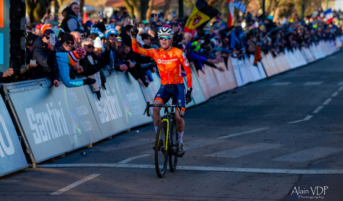 Découvrez les photos des titres mondiaux de Lise Revol, Tibor del Grosso et Fem van Empel sur les courses juniors femmes, espoirs hommes et élites femmes lors des championnats du monde de cyclo-cross à Liévin.