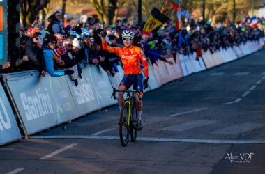 Découvrez les photos des titres de Mattia Agostinacchio, Zoe Bäckstedt et Mathieu van der Poel sur les courses des juniors hommes, espoirs femmes et élites hommes des championnats du monde de cyclo-cross.